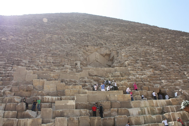 Quando você sobe em alguns blocos das pirâmides, uns gritam pra você sair, mas se você não sai, nada acontece também. E do nada, uns pedem pra ver seu ingresso e acho que falavam pra gente não ficar ali. Ah, tá!