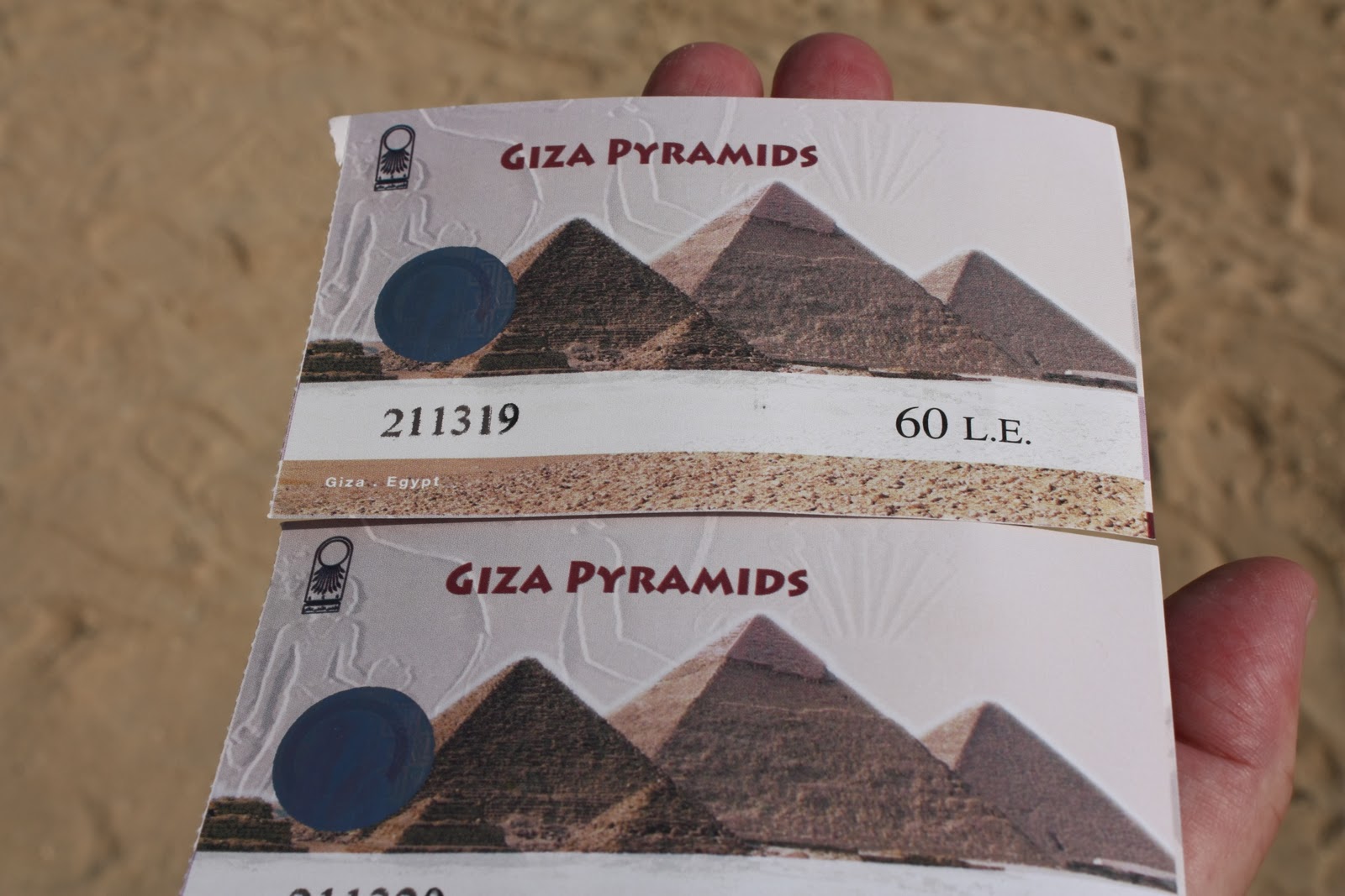 O motorista nos levou na entrada próxima da Esfinge e já foi direto numa agência de turismo que ficava praticamente em frente a esta entrada, na tentativa de nos vender ingressos mais caros e tentar ganhar sua comissão. Aí eu disse pra ele que eu iria comprar os ingressos na bilheteria das pirâmides e não ali. Fiquei muito brava e disse que esperava que ele fosse honesto conosco, já que iria ser nosso guia durante um dia todo: que eu queria comprar as coisas pelo preço honesto e blá blá blá…Aí ele não teve alternativas e nos levou na tal bilheteria, que mais parecia a sala do horror e não a bilheteria de um dos monumentos mais famosos e visitados do mundo! Bem, compramos os tais ingressos por 60 LE cada.