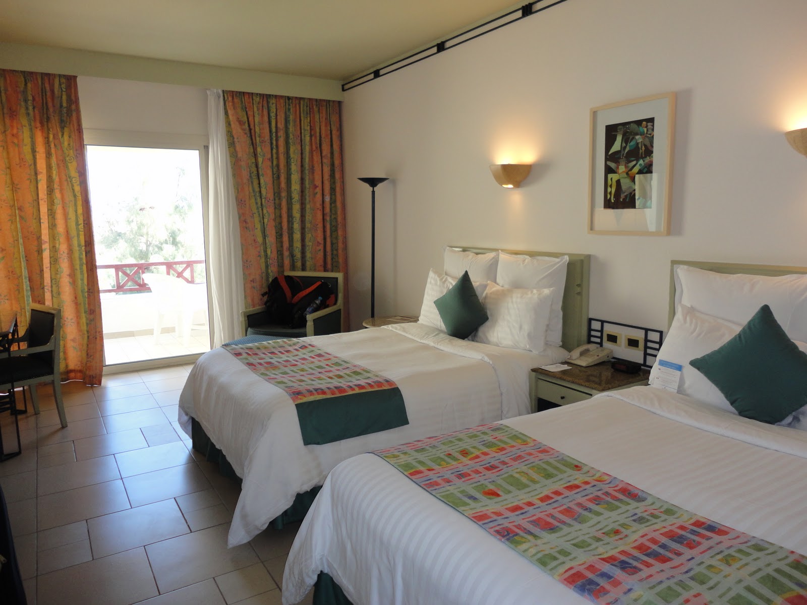 Em poucos minutos já estávamos no nosso maravilhoso hotel. Ficamos no Marriot Sharm el Sheikh Red Sea Resort, de frente pra praia! Assim como no Cairo, os preços dos resorts são muito atraentes e não vale a pena passar perrengue num lugar destes, ficando em hostels ou pousadas mais simples! Aqui sim, vale a pena ficar num bom hotel, sem ter que desembolsar fortunas para isso!