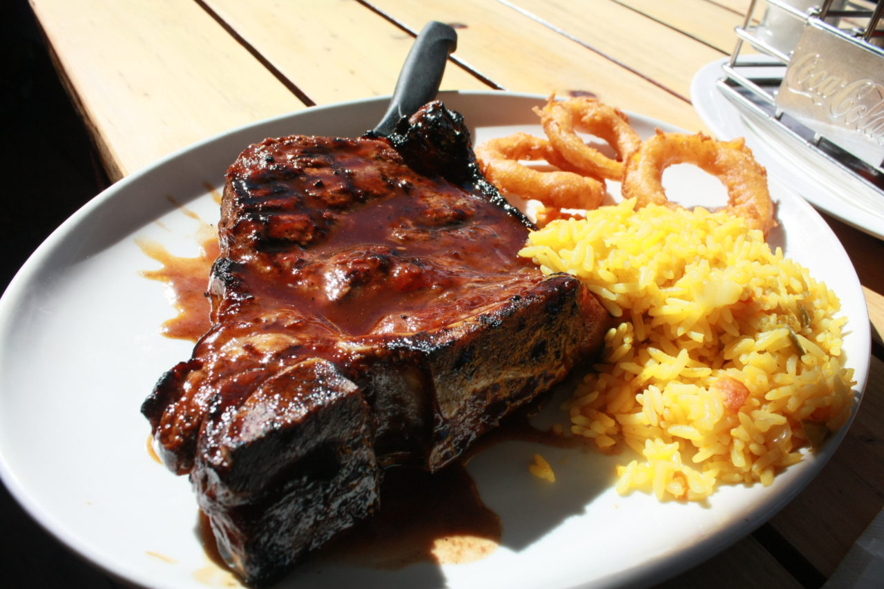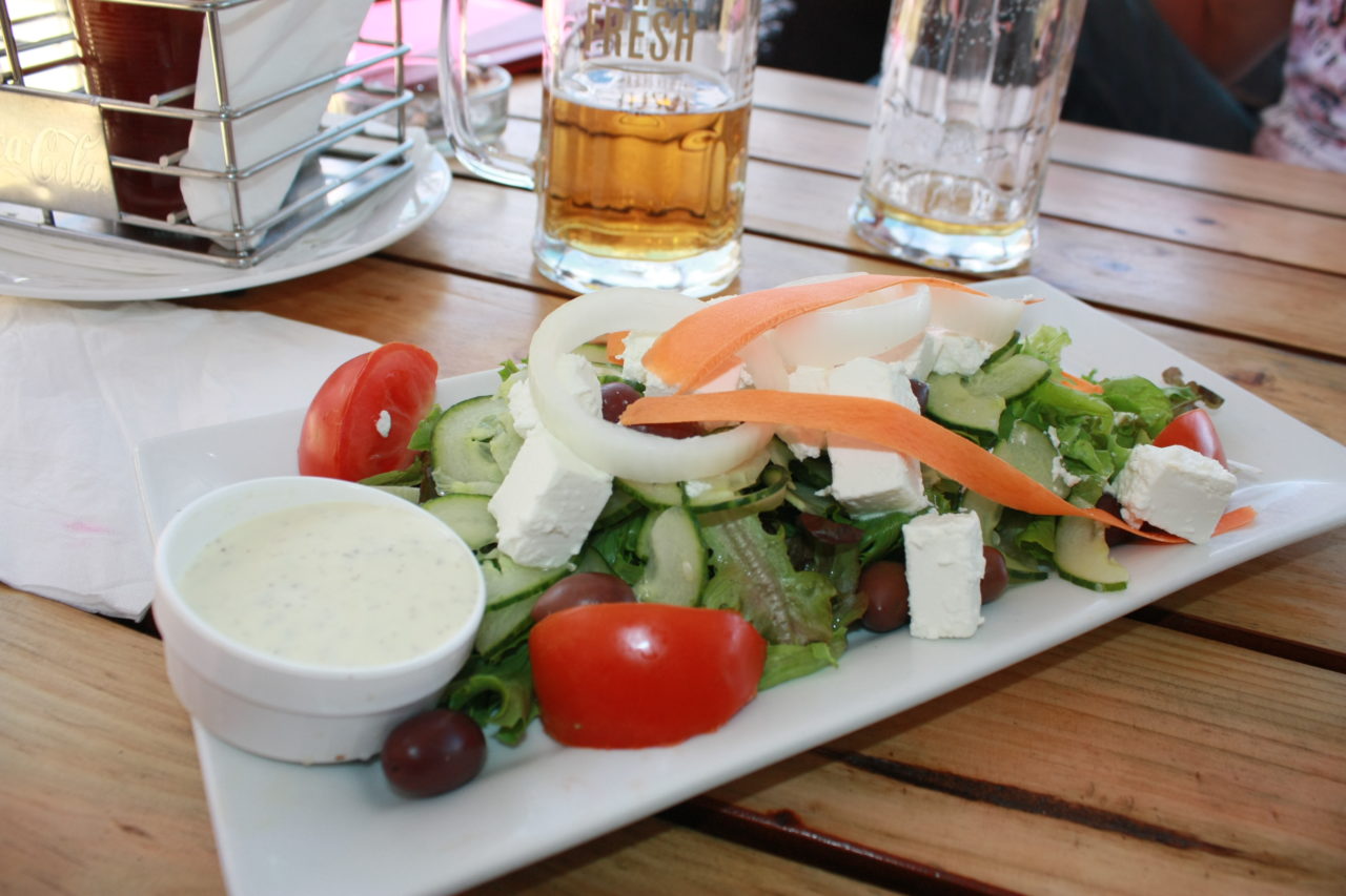Pedimos lulas grelhadas , que estavam derretendo, uma salada grega deliciosa e depois, um steak enorme, que dividimos porque não estávamos mais com tanta fome, além e várias cervejas…