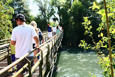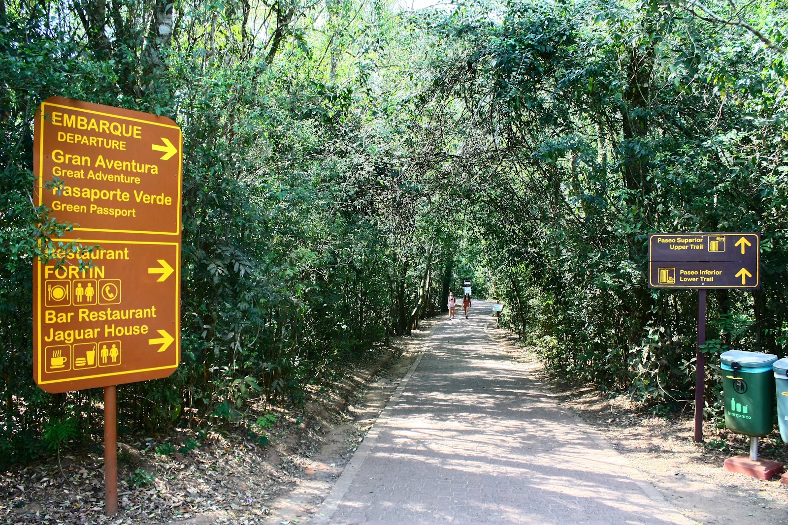 Ao entrar, toma-se um trenzinho (já incluídos no ticket) até a estação Central e de lá há duas possibilidades: continuar o caminho num outro trem até a Garganta do Diabo ou seguir pelas duas trilhas: O Paseo Superior e o Paseo Inferior. Optamos por tomar o outro trem e seguir até a Garganta e deixar as outras trilhas para depois.
