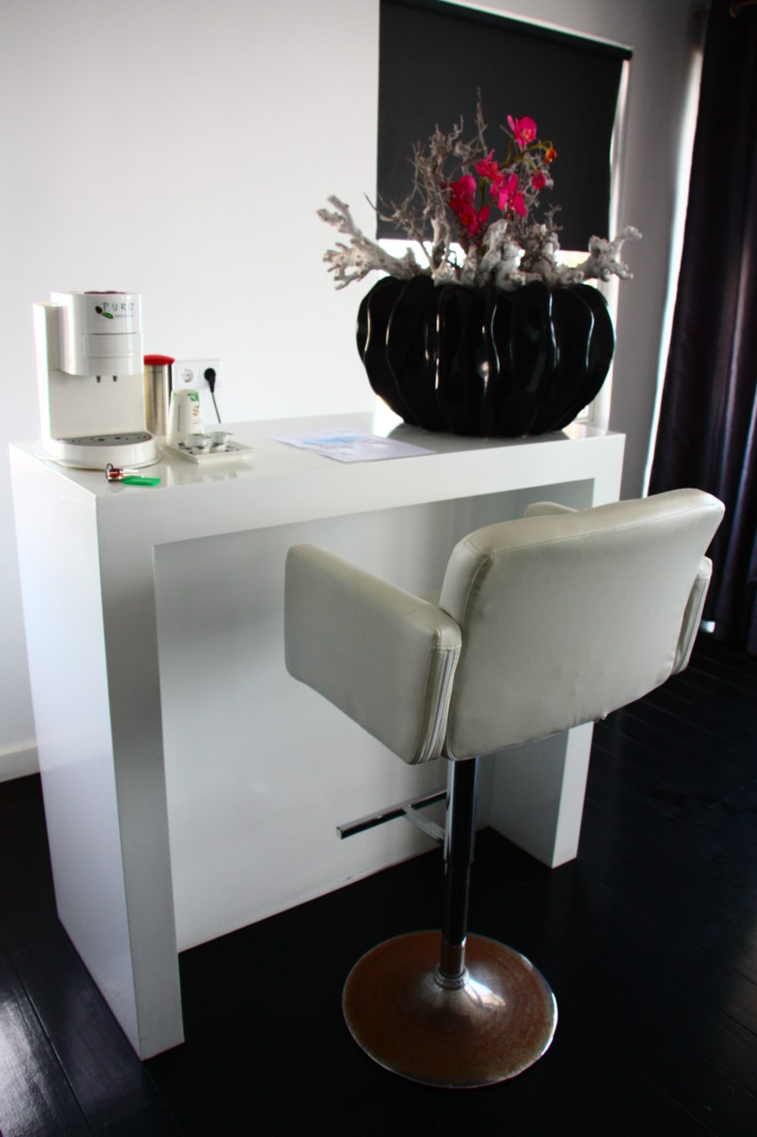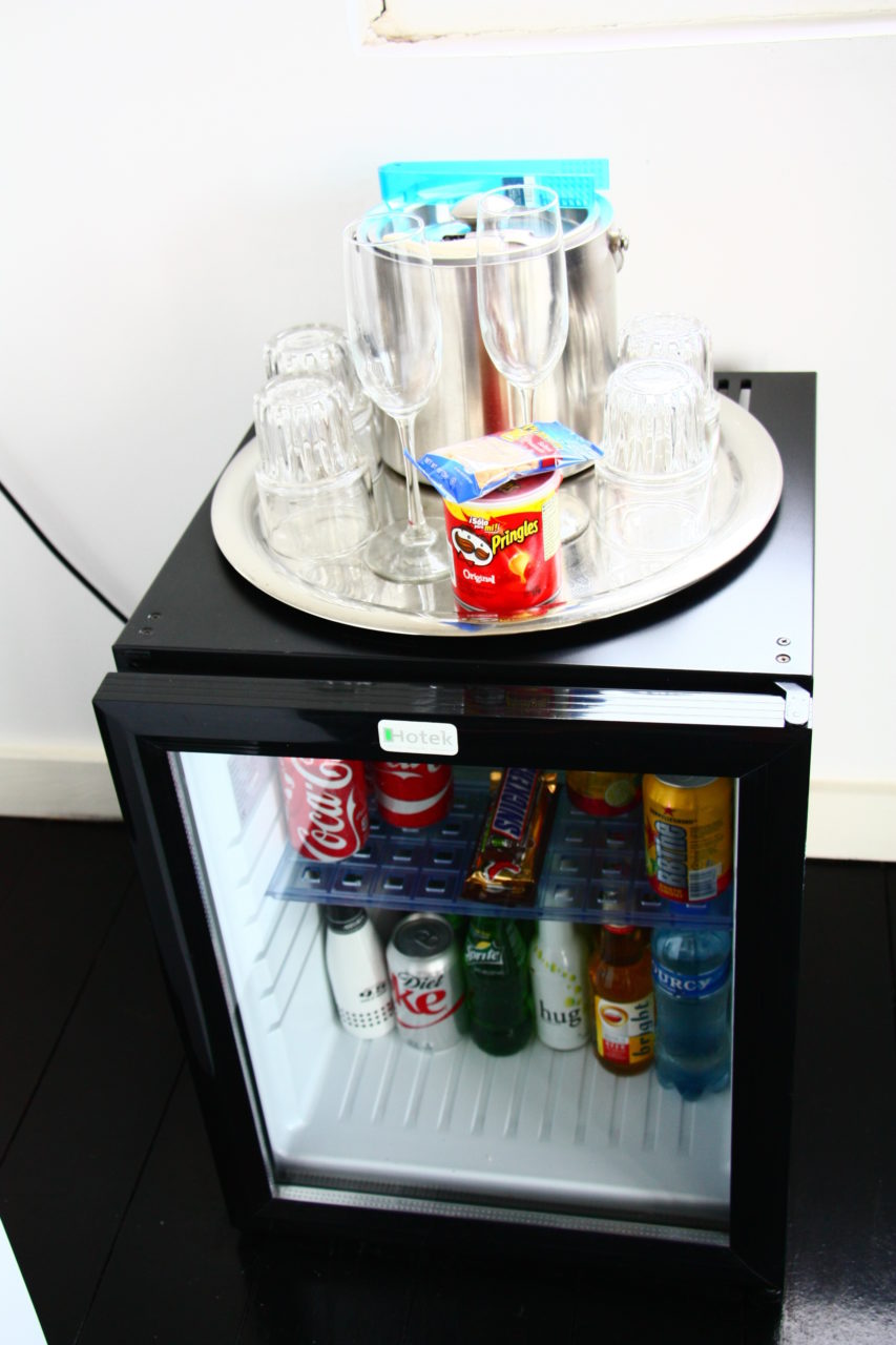 No quarto há um frigobar, que na verdade, é mais um climatizador, logo não gelava bem as bebidas. Tivemos que comprar isopor e gelo no supermercado para manter geladas as cervejas que comprávamos pra levar para as praias no dia seguinte. Há também cafeteira onde fazíamos nosso café da manhã, taças para champagne e balde de gelo! O quarto ainda dispunha de secador de cabelo, ferro e tábua de passar, frigobar, TV a cabo , wifi free, enfim, tudo que você precisa para ficar bem instalado e com muito conforto!