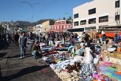 De lá, seguimos para o Cerro Playa Ancha, em direção ao Paseo 21 de Mayo (para pedestres, acesso pelo Ascensor Artilleria), uma ruazinha no alto de um dos muitos cerros de Valpa, de onde se tem uma bela vista do porto da cidade. O local conta ainda com várias tendinhas de artesanatos locais, tais como a pedra lápis-lázuli, muito bonita, mas muito cara, por sinal. Mas se você gostar, compre porque esta pedra só é encontrada no Chile e no Afeganistão.