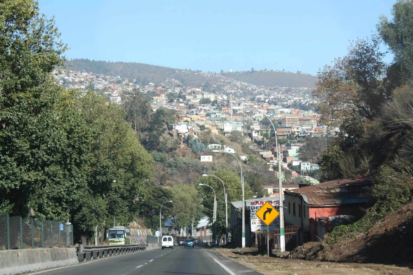 Tomamos a Ruta 68 em direção ao Pacífico. O caminho por si só já enche nossos olhos com suas plantações de uvas e azeitonas, com a estrada margeada, muitas vezes, por roseirais e maciços de lavanda. Pouco mais de 100 km depois, chegamos a Valparaíso!