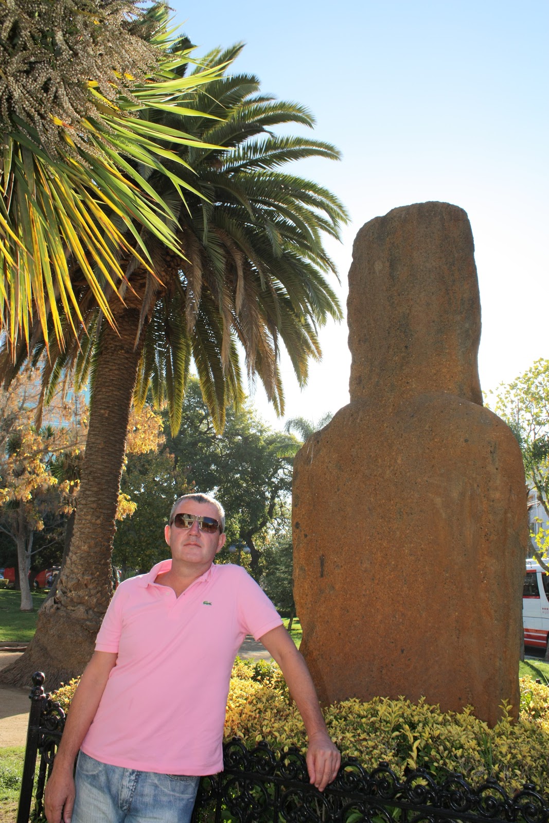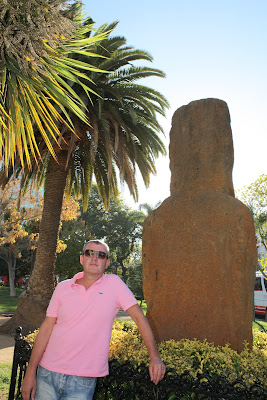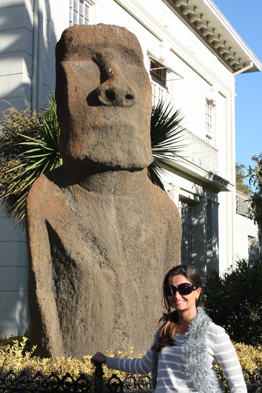 Após voltas e voltas por Vina, achamos a tal praça onde ficava o museu com a estátua do Moai. Meu marido já estava tão estressado (ele já é um pouco mesmo) que quis tirar uma foto de costas para a estátua rsrs Só ele com sua mente fértil para ter estas idéias….E ficou xingando a estátua por uns bons dias, como se ela tivesse culpa de nós não termos um mapa em mãos!