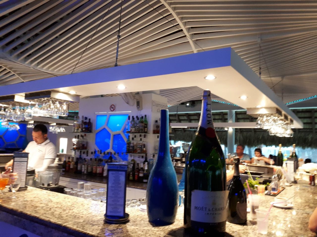 - El Viejo y el Mar Beach Grill, à la carte, especializado em comida mediterrânea e que fica de frente pra praia. Durante o dia ele serve também alguns snacks, sanduíches e outros pratos pra quem está na praia. Nós jantamos um dia qui, no pôr do sol e comemos uma lagosta maravilhosa, tudo incluso! Foi ótimo!