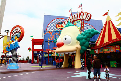 Schrek 4D: como o nome diz , um filminho conta a história do Schrek em 4D e é uma gracinha. Para adultos e crianças. Recomendo ir nele antes de ir no Simpsons Ride!!