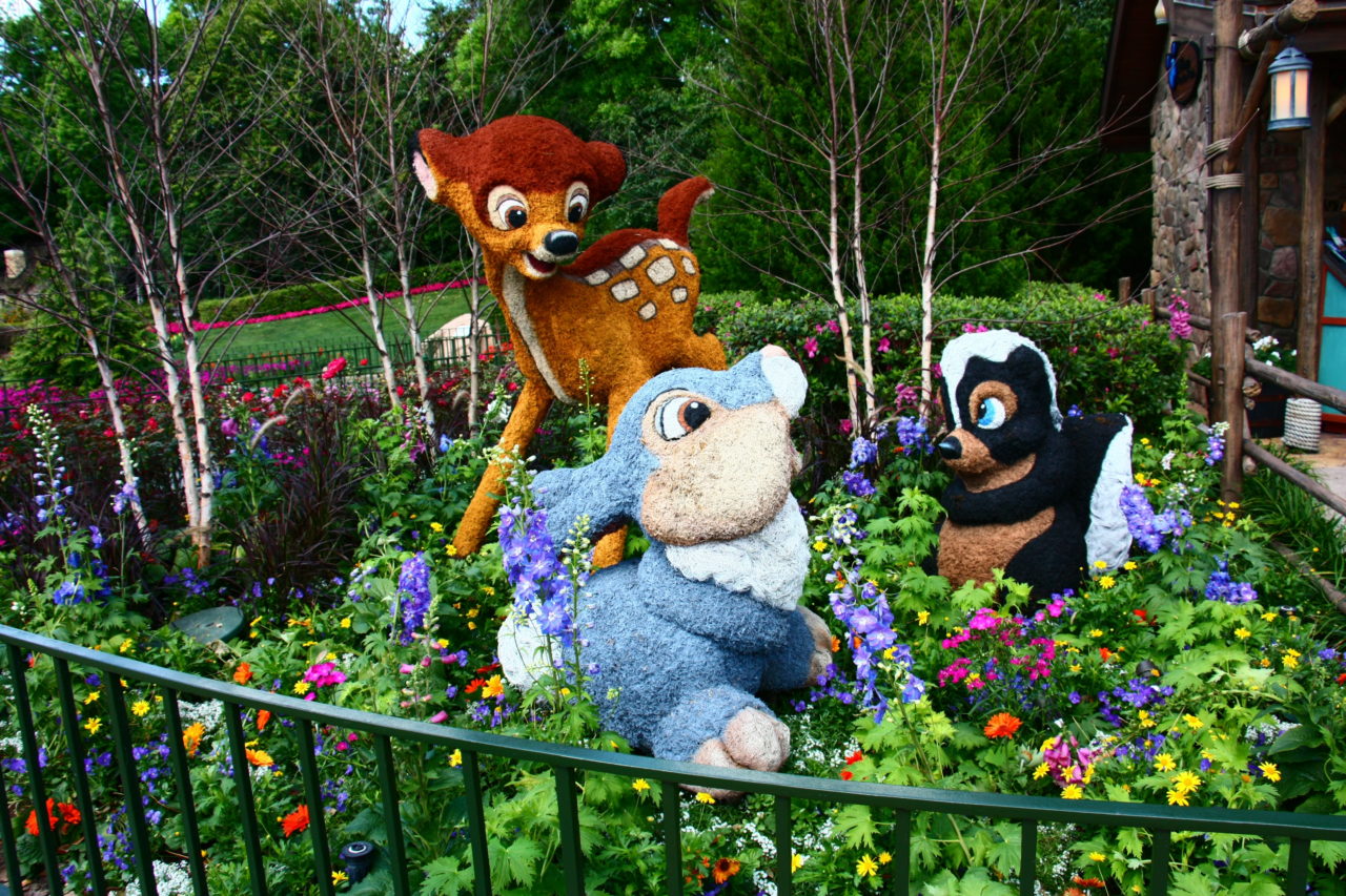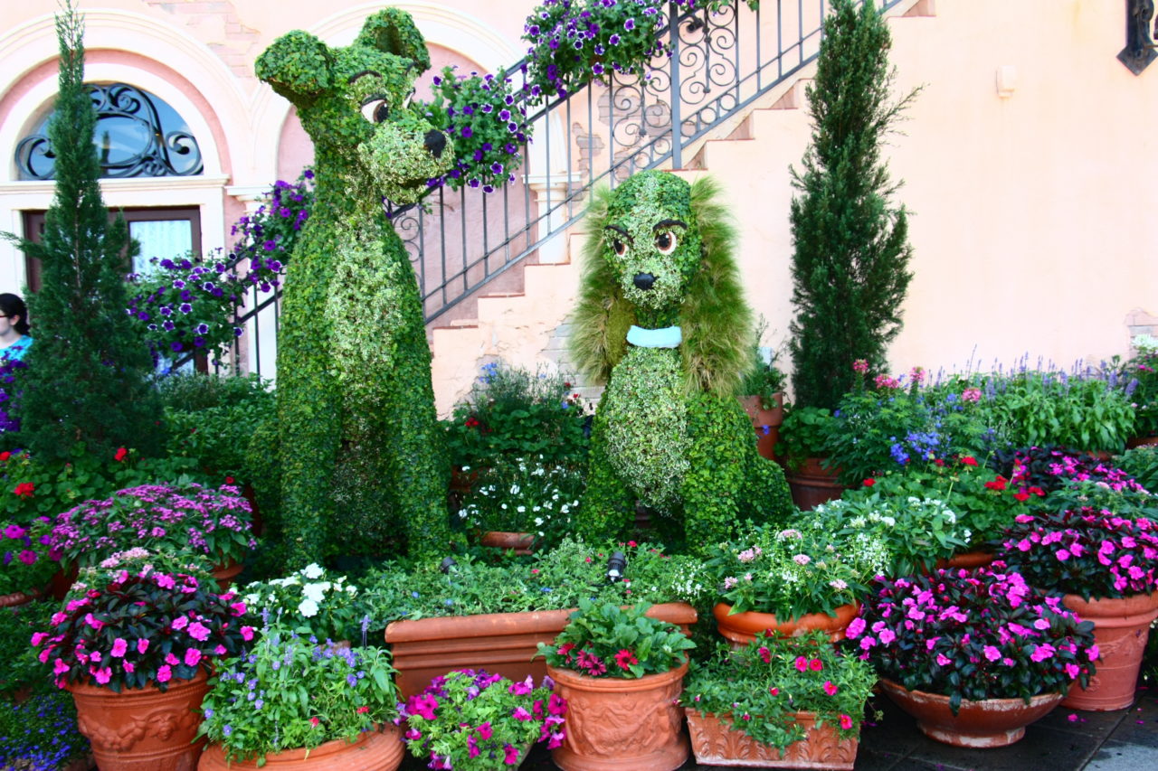 O Epcot é um parque lindo e nele ocorrem vários festivais ao longo do ano e nós demos a sorte de visitá-lo bem  na época do Flower and Garden Festival, um espetáculo de cores e flores pelos jardins que a gente fica doida. As estátuas dos personagens são espalhadas pelos jardins, cobertos de plantas. É inacreditável de tão lindo!!