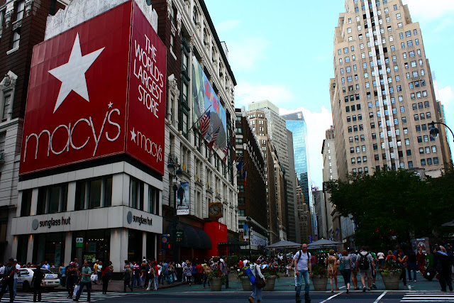 Compras feitas, almoçamos por ali mesmo e voltamos para o hotel deixar as compras e fazer o check-in. Bem pertinho do hotel está a Herald Square, onde está a gigantesca Macy’s, a maior loja de departamento dos EUA e uma das maiores do mundo!!! Aproveitei pra fazer mais umas comprinhas, roupas de cama, basicamente, porque estou no meu momento “casa em reforma” e quero tudo novo! Na ocasião, a loja estava homenageando o Brasil, com decorações em verde amarelo e muito axé.