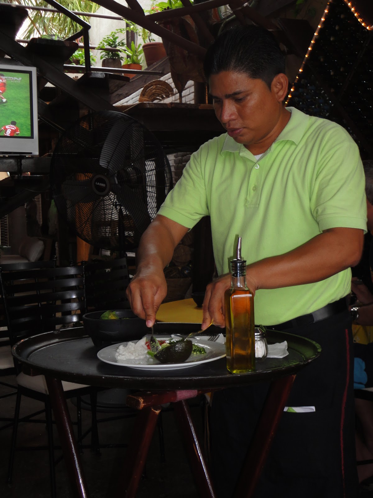 E por volta da hora do almoço, ela veio, ficando o dia todo incomodando. Já era mais de meio dia e não nos restava outra coisa a fazer a não ser comer. Então fomos ao restaurante Adela e pedimos uns tacos de entrada e o autêntico guacamole, que o cara prepara na hora pra você, na sua mesa.