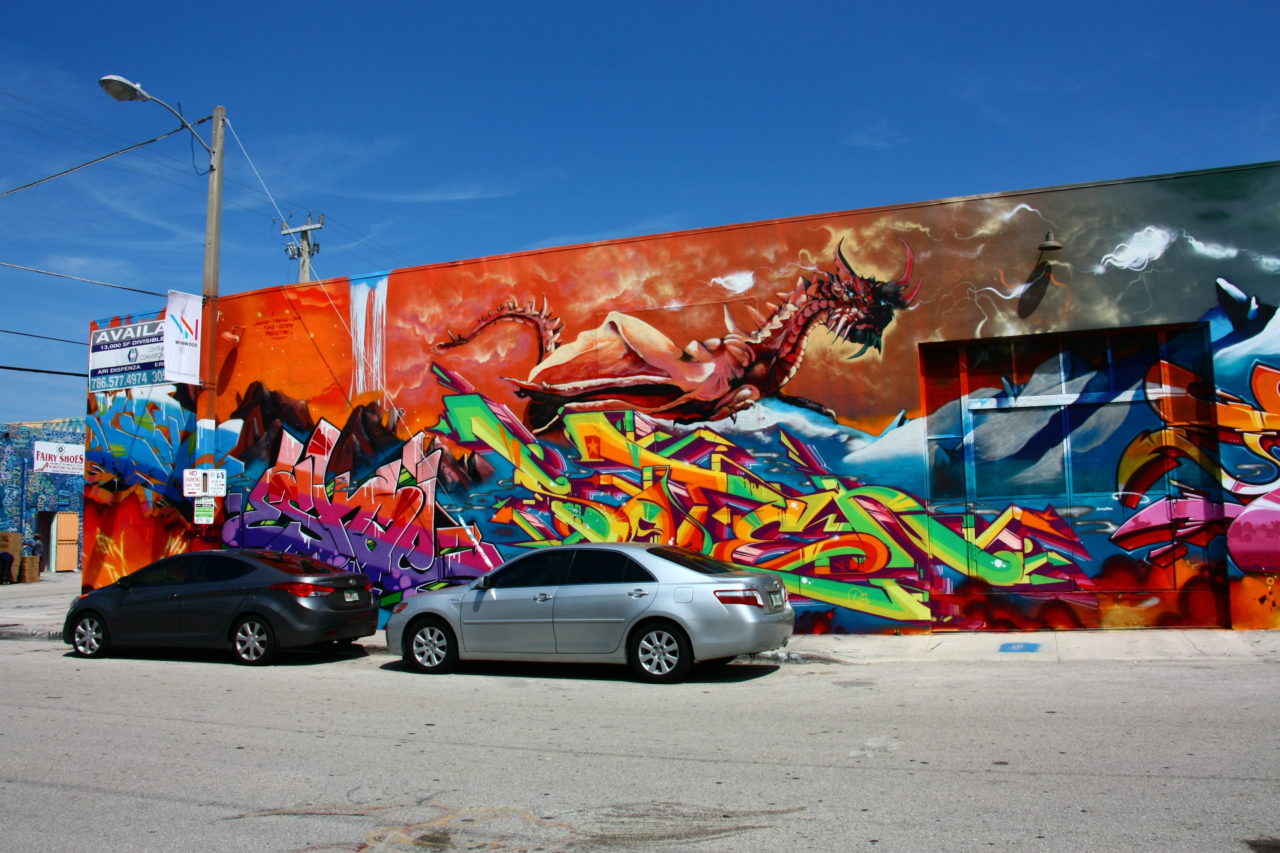 Uma das atrações de Downtown Miami é a área chamada de Wynwood Walls,  uma área de muros grafitados que hoje abriga bares e restaurantes charmosinhos.