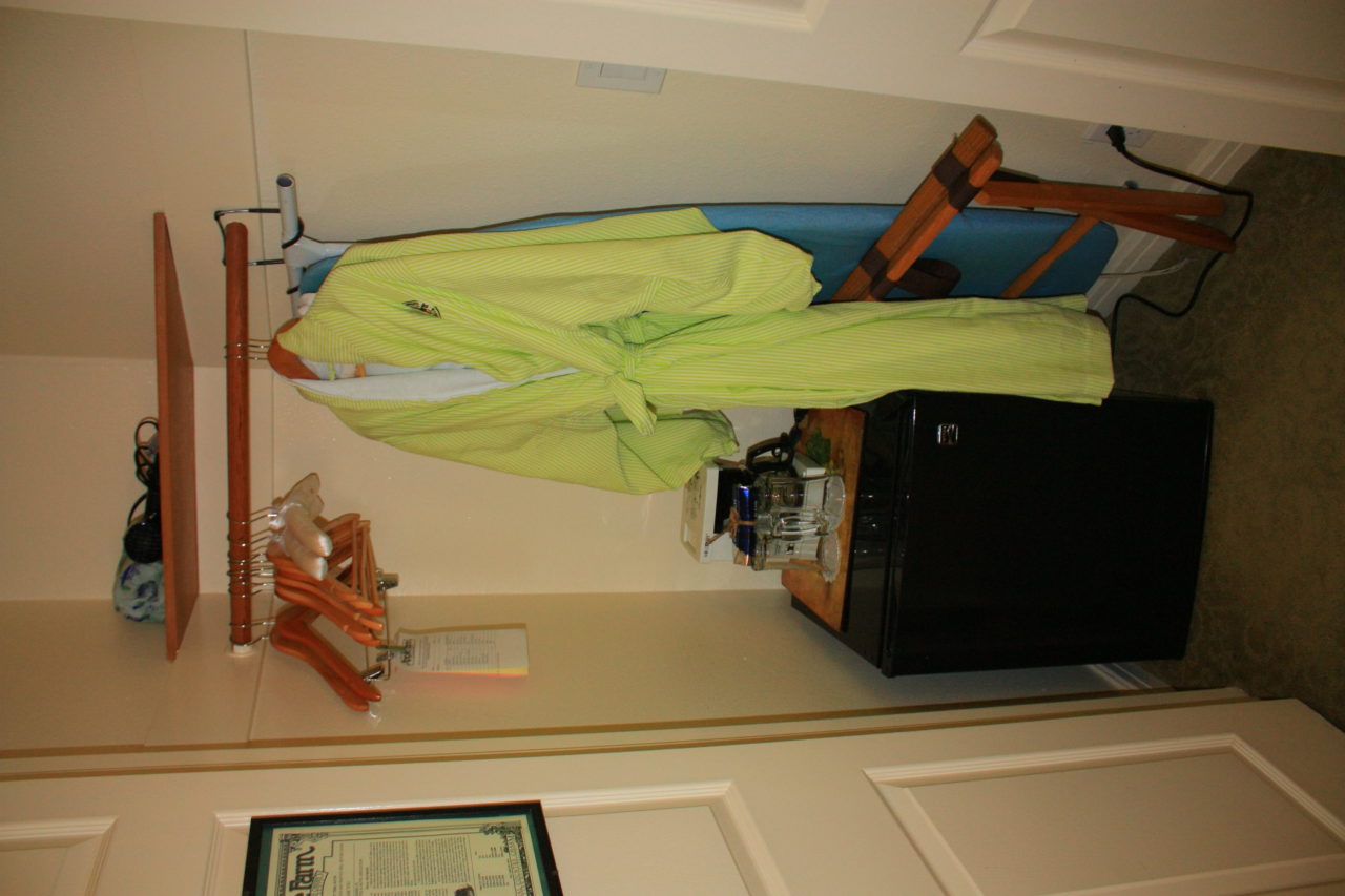 O nosso quarto era uma enorme suíte, chamada Queen Special, com duas camas Queen e sala de estar juntas, banheiro com hidromassagem, amenidades de banho, secador de cabelo, sistema de aquecimento, lareira elétrica (luxo!), tábua e ferro de passar, roupões, TV, frigobar, base para Ipod, escrivaninha, enfim, tudo para uma estadia perfeita!