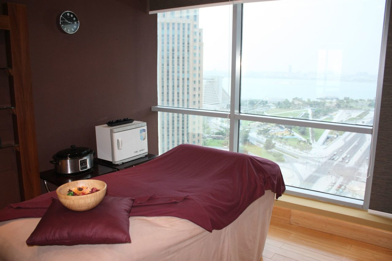 No 26º andar do Movenpick Hotel West Bay Doha está a área de lazer do hotel, que conta com o Bay View Spa, com piscina aquecida coberta com vista 360 graus da cidade, salas de massagem separadas para homens e mulheres, jacuzzi , academia de ginástica equipada com aparelhos de ultima geração e novamente, sempre com estonteantes vistas para o Golfo!!!