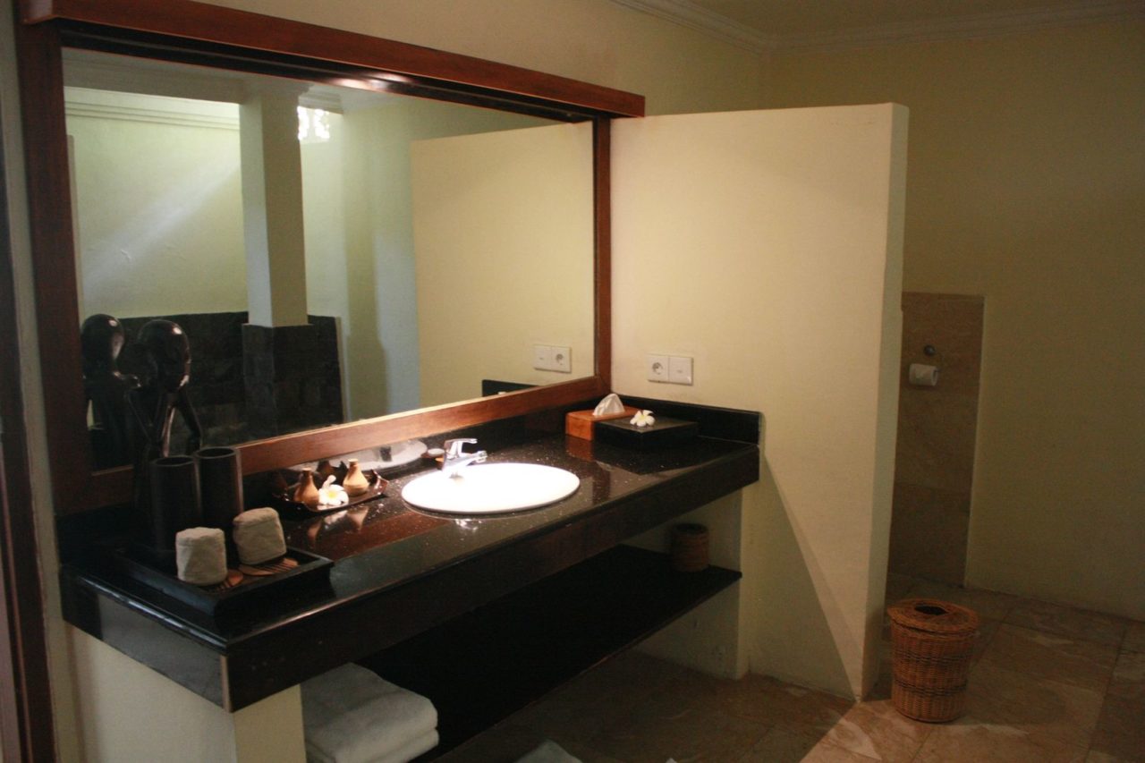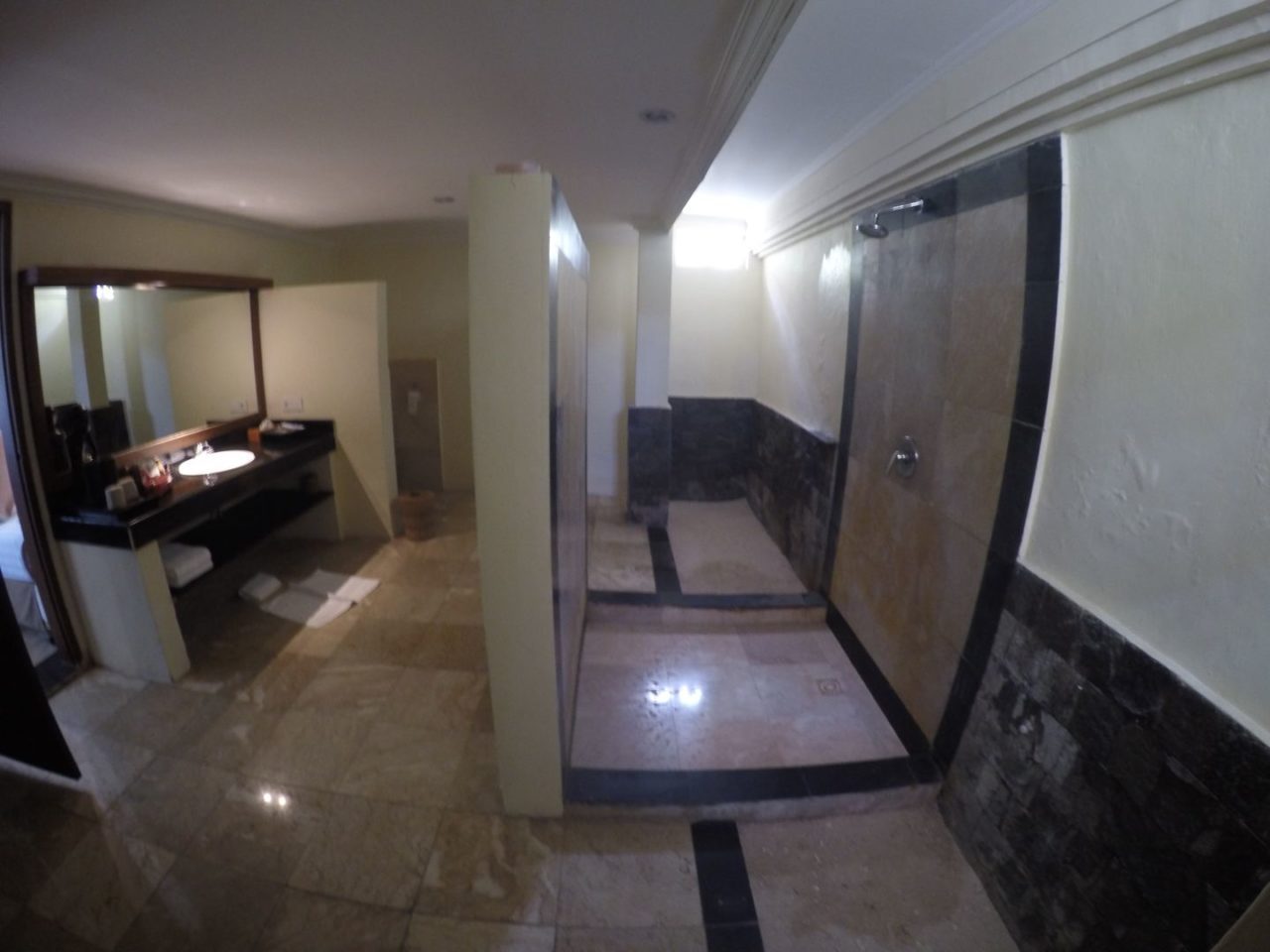 Assim que chegamos no hotel, já me encantei com o drink de boas vindas, servido em suportes de madeira de bonequinhos indonésios. Achei um charme. O check-in foi rápido e em poucos segundos já estávamos em nosso quarto, antes mesmo da hora prevista! Ninguém merece chegar num hotel e ter que ficar esperando quarto, né?