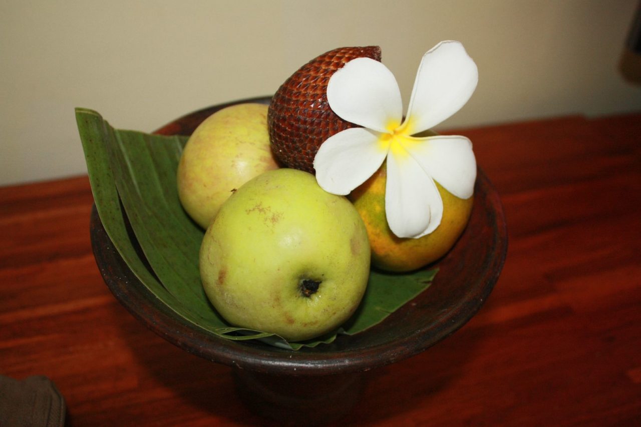 Frutas estavam e água mineral estavam disponíveis no quarto na chegada e a água era reposta até 2 vezes por dia. Aliás, o quarto também era limpo duas vezes por dia, incrível!
