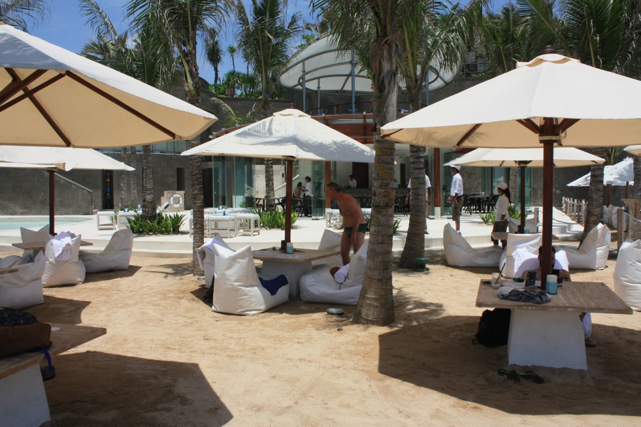 E por falar em valor, aqui entra a parte ais bizarra: pra promover a piscina, o hotel cobra míseros 250 mil rúpias (cerca de R$ 63,00*) por pessoa para acesso geral e 400 mil (cerca de R$ 100,00*) para a área VIP, sendo que em ambos os casos, apenas 50 mil é realmente o valor pago para acessar o beach club, sendo a diferença usada como consumação. Ou seja, se eu paguei 250 mil posso consumir 200 mil com o que eu quiser, no entanto, uma taxa de serviço de cerca de 40 mil rúpias é descontada desta consumação.