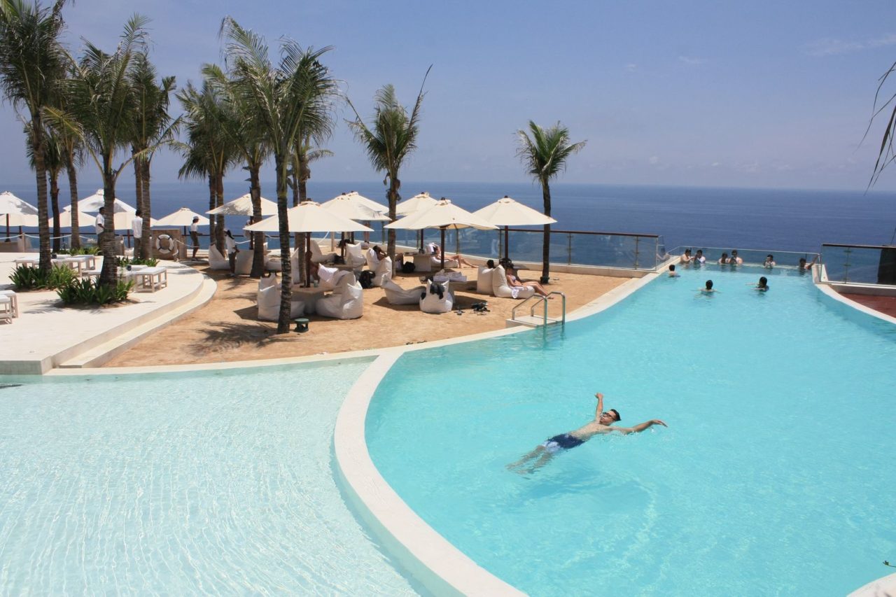 O The Edge Hotel existe há 9 anos em Bali e é um dos mais luxuosos e exclusivos hotéis da ilha, com diárias que passam dos 5 dígitos, no entanto, a sua mais nova atração, a piscina, foi inaugurada apenas há 3 semanas e ainda é, por razões óbvias, ainda pouquíssimo divulgada.