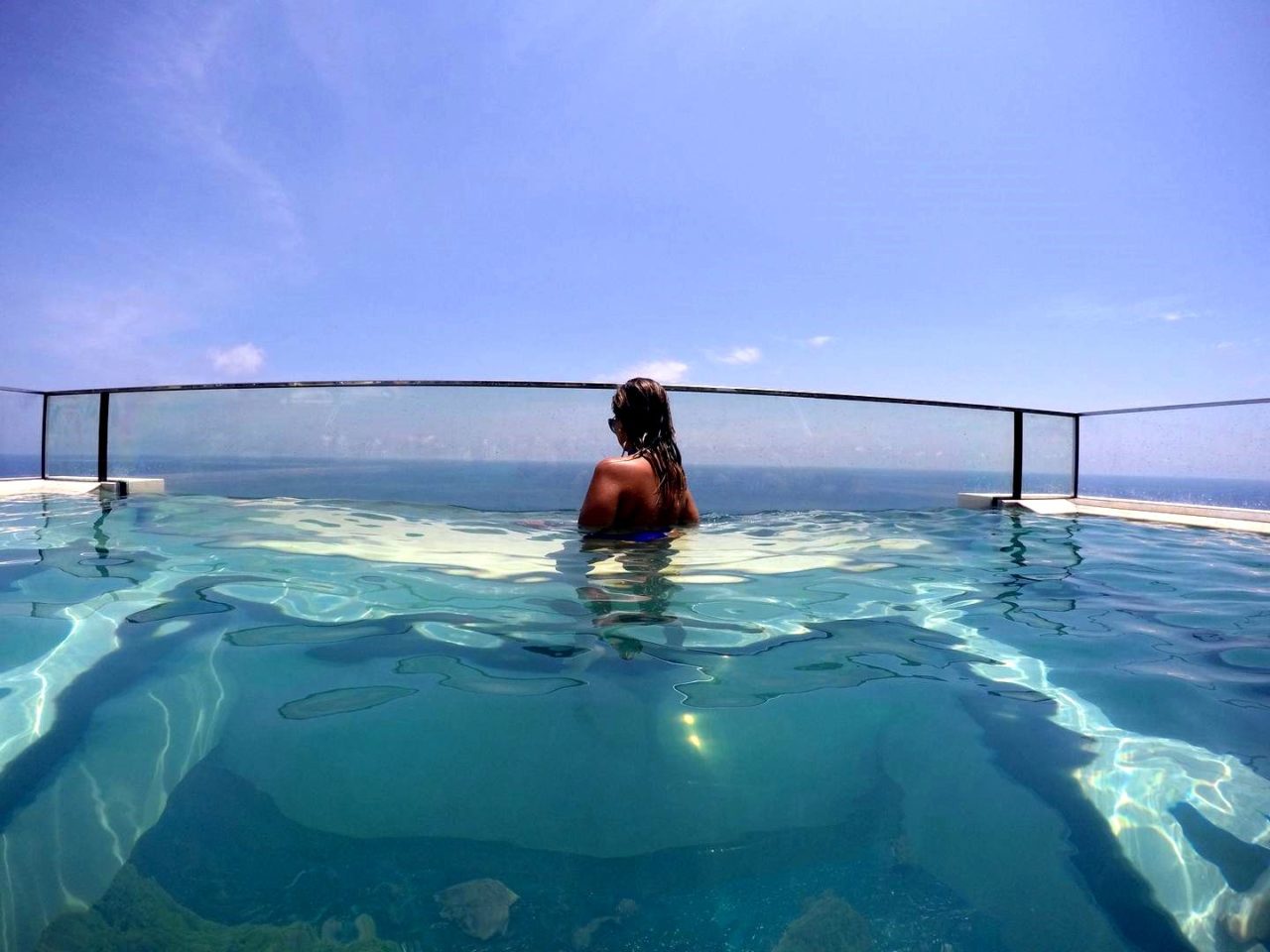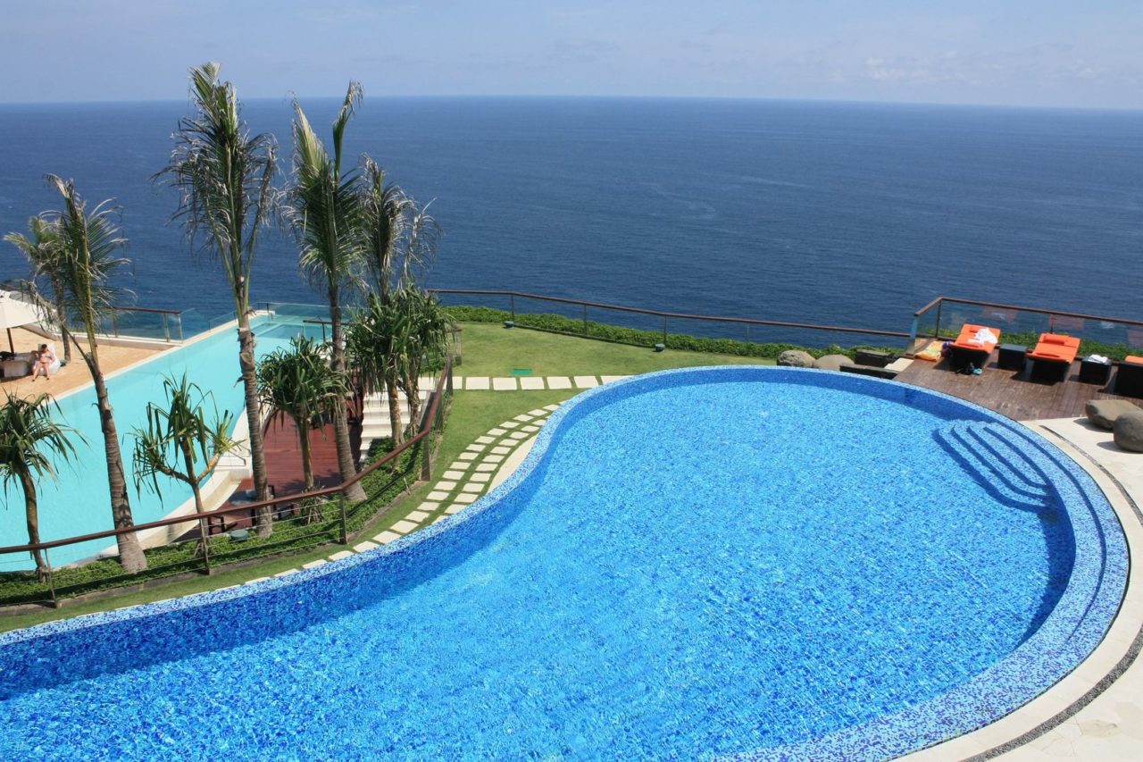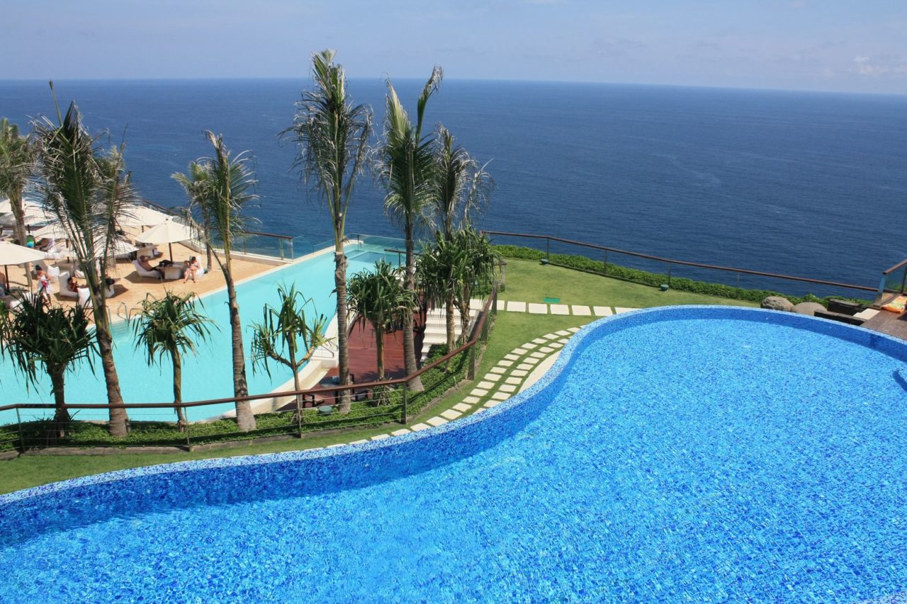 Dias antes de eu embarcar para Bali, vi um vídeo destes que aparece a todo tempo na minha timeline e que me chamou a atenção: o vídeo mostrava uma piscina de borda infinita com fundo de vidro de um luxuoso hotel, debruçada em um penhasco na ilha de Bali. Era um vídeo parecido com este abaixo, mas não mostrava o nome do hotel: