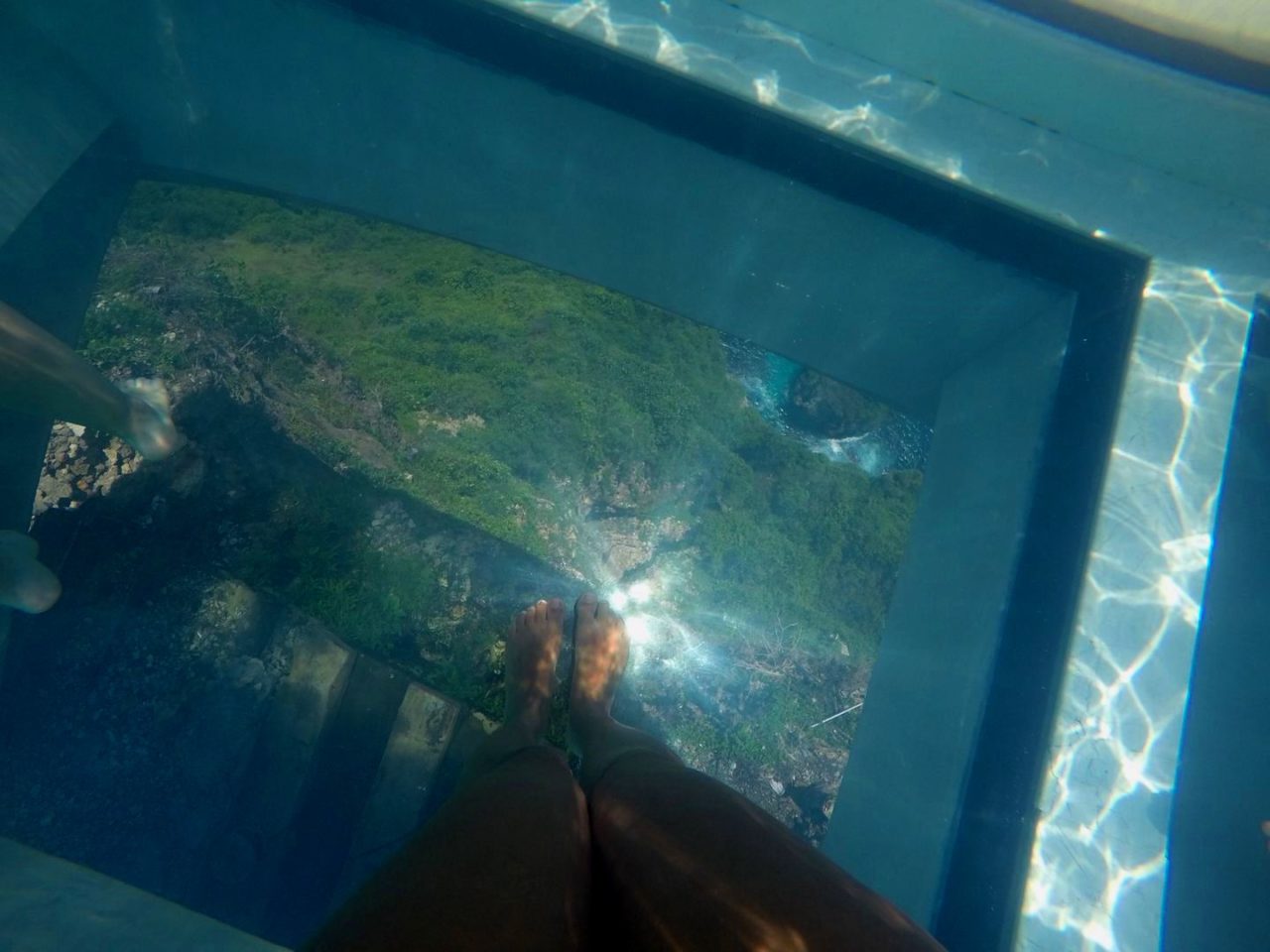 Confesso que dá um certo medo entrar na piscina e pisar no tal vidro, mas é só num primeiro impacto, depois a gente nem sente.