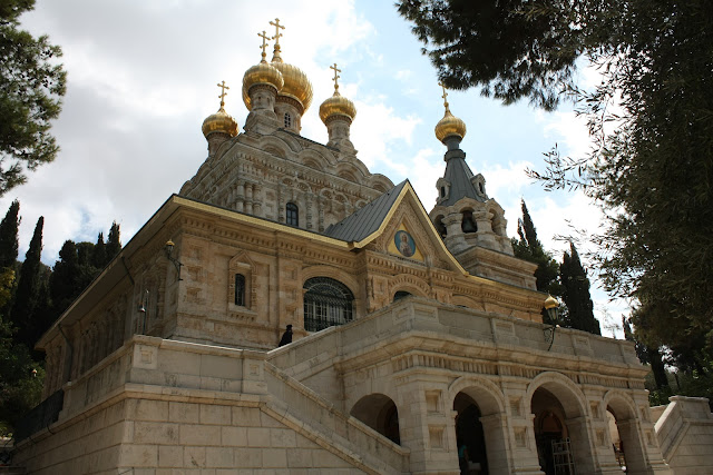Seguindo nossa caminhada, a próxima parada foi a Igreja Ortodoxa de Maria Madalena, construída em 1888, com seus domos dourados que reluzem de longe. É aqui que está enterrado o corpo de Maria Madalena.