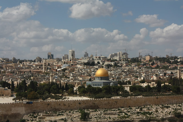 Da Igreja, uma bela vista de Jerusalém e seu Domo da Rocha.