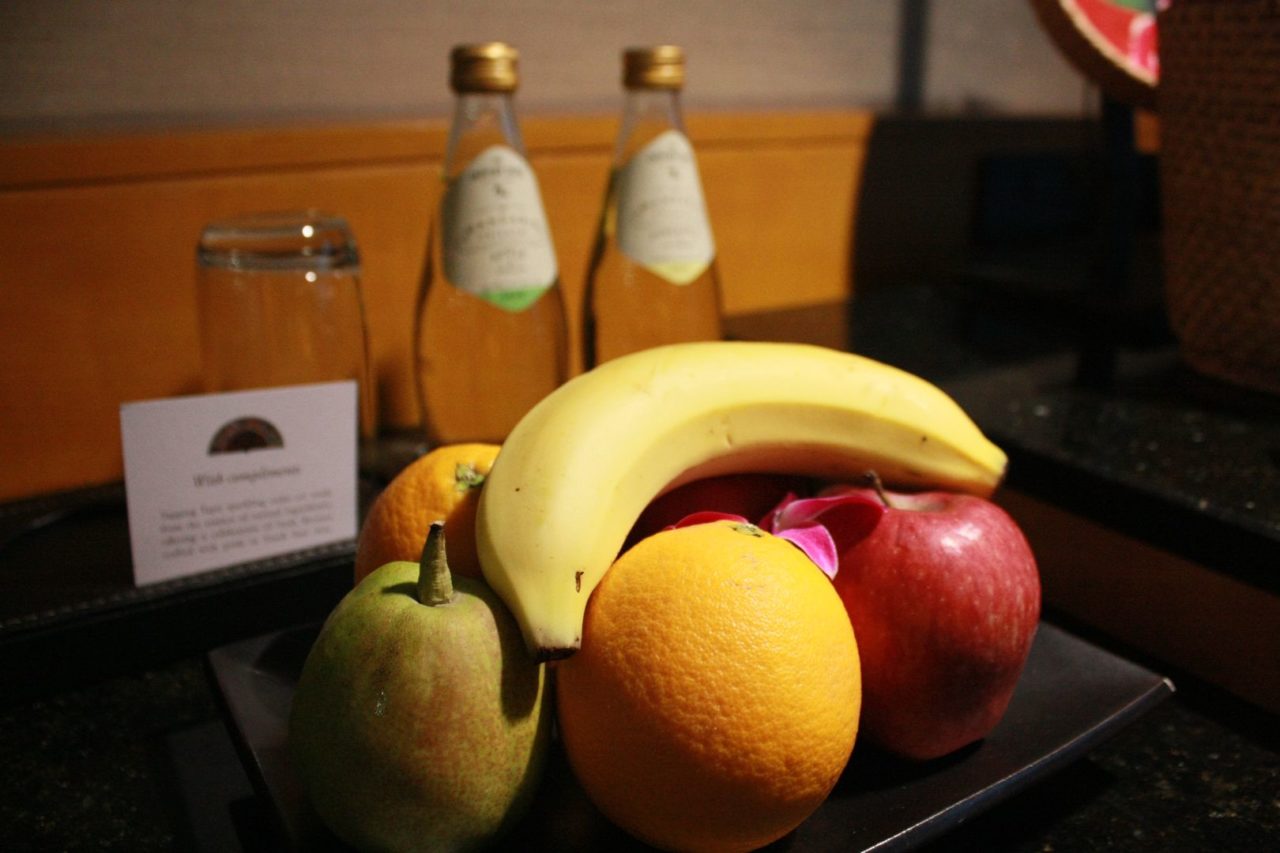 Ao chegarmos no nosso quarto, ainda encontramos frutas, um cesto contendo bule com chá quentinho e um prato repleto de chocolates e bombons personalizados do hotel, cada um mais gostoso que o outro. Estes mimos me conquistam!