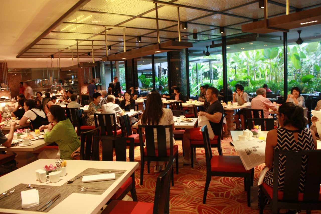 O café da manhã do Mandarin Oriental Singapura é um caso à parte e é um verdadeiro almoço. Servido no Melt Café, das 06:30 às 10:30, contempla inúmeras estações de comidas de diferentes tipos e de diferentes regiões do mundo: tem estações de pães, de bolos, de queijos de sucos e frutas, de frios, de saladas, de comidas asiáticas, indianas, e até uma com sorvetes!