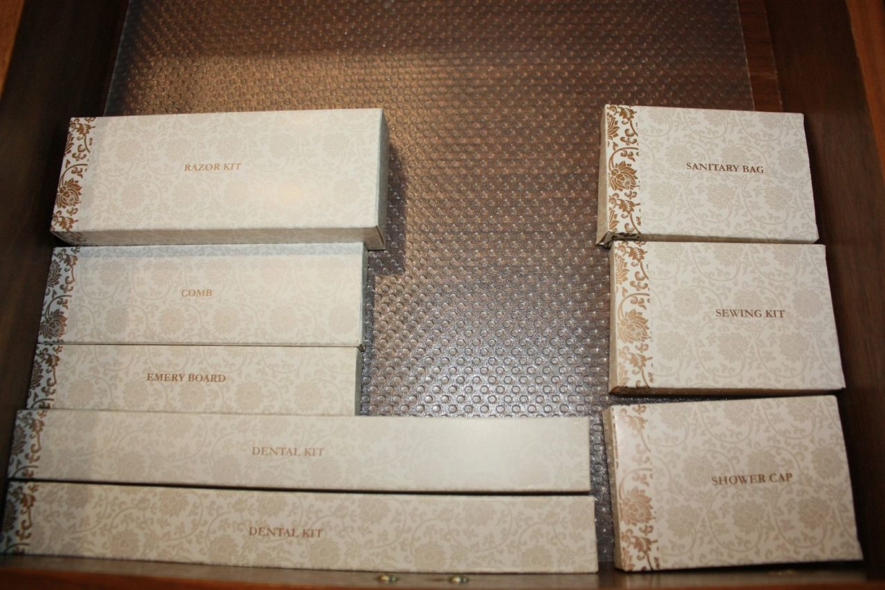 O banheiro era super aconchegante, com um bela hidromassagem e parede de vidro que dava vista para o quarto. Um kit com todas estas amenidades que a gente ama estava disponível em gavetas, o que incluía escovas e pasta de dente, barbeadores, pente, kit costura, algodão cotonetes, etc. As amenidades de banho eram excelentes e ainda continham sais de banho para aquela hidromassagem.
