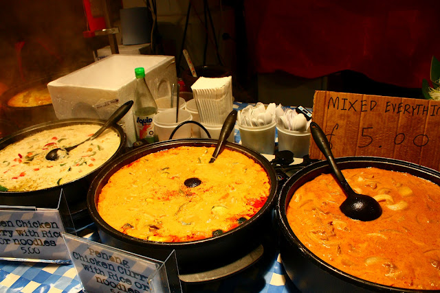 Bem, ficamos fazendo hora debaixo daquela chuva fina e daquele frio até que as barracas de comidas começaram a abrir. Uma mistura de cheiros e essências orientais veio no ar e foi uma pena que ainda eras muito cedo pra comer um pad thai ou algo do gênero!!
