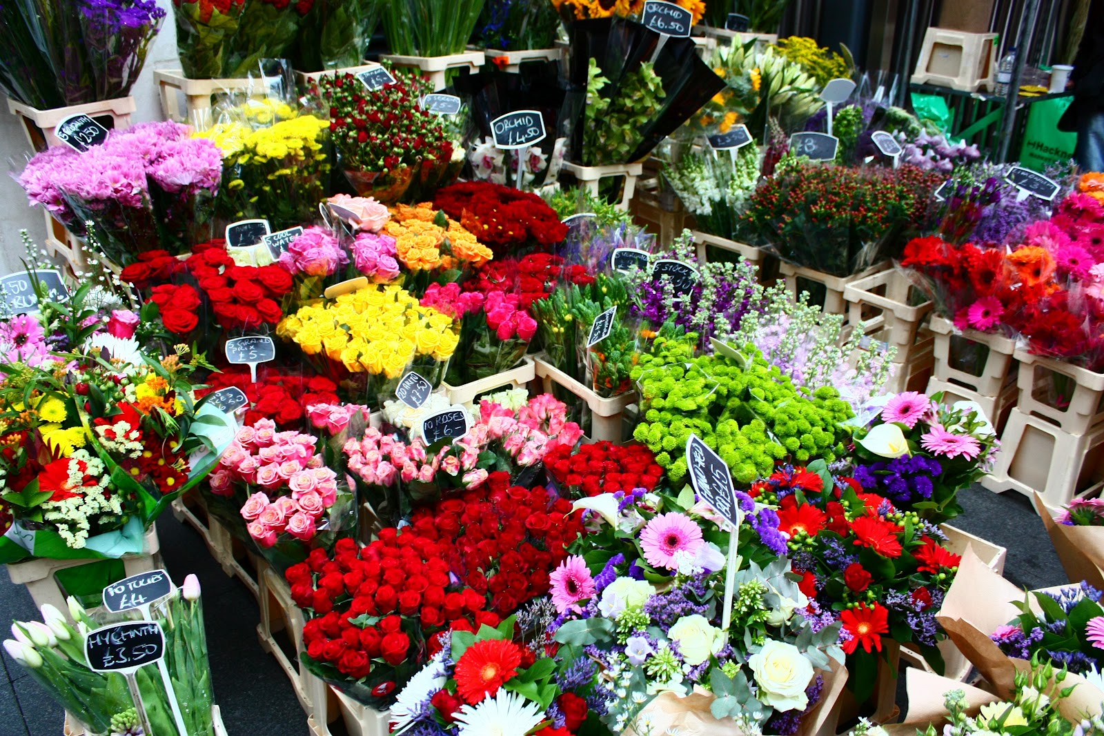 Mas o mercado não é composto só de roupas. Por aqui há flores…
