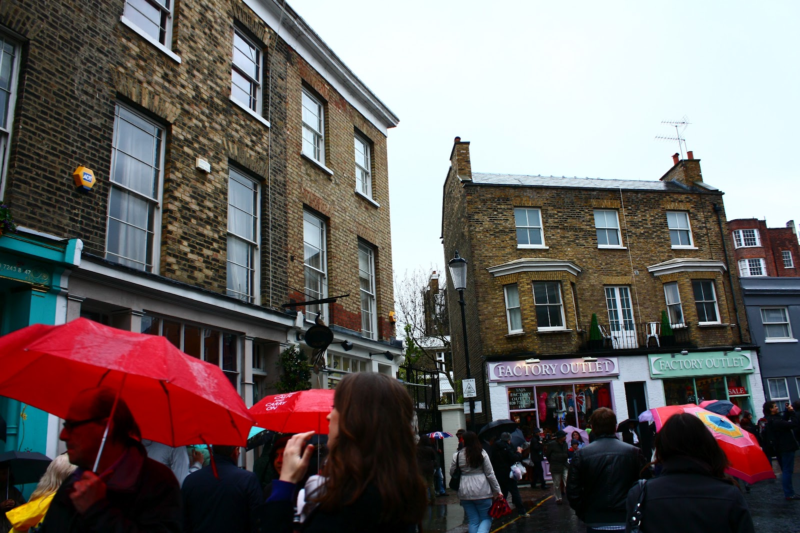 Bem, a Feira de Portobello Road, como o próprio nome diz, acontece na Portobello Road, uma das ruas principais do bairro de Notting Hill, bairro este que ficou famoso em 1999, após ser cenário do filme “Um Lugar Chamado Notting Hill”, protagonizado por Hugh Grant e Julia Roberts. Eu não me perdoava de ter visitado Londres em 2009 e não ter conhecido este fantástico lugar!