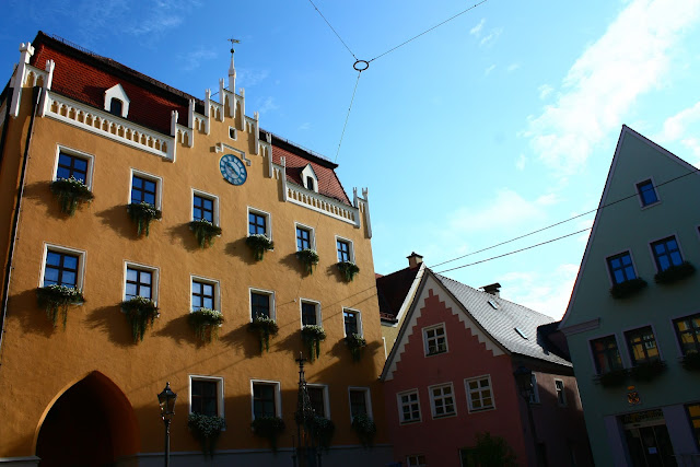 A Praça do Mercado, dominada pela Torre Schmalz e pela bela fachada de Dominikus Zimmermann, é o ponto central da cidade, rodeada de algumas lojinhas e muitos cafés.