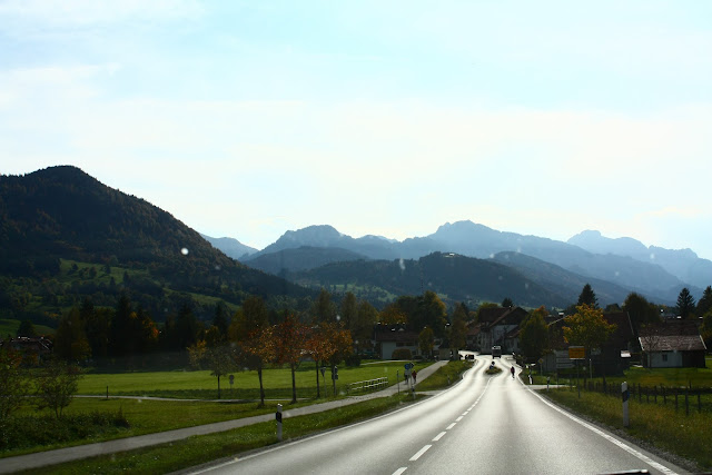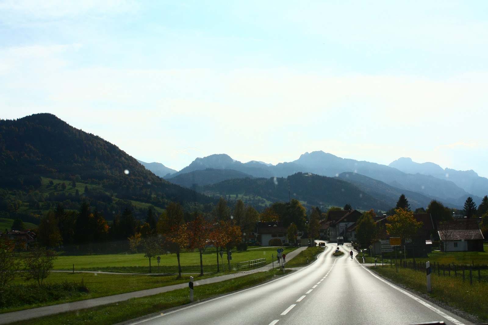 Antes de chegarmos a Fussen, passamos por várias outras cidadezinhas. Às vezes parávamos, outras vezes não. Algumas valiam mais umas fotinhas; outras nem tanto. Nos quilômetros finais da rota começamos a avistar os Alpes ao longe. Nesta parte da rota também, vimos os campos mais floridos, com canolas e girassóis, mas infelizmente não deu para pararmos para as fotos.