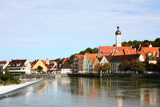 Depois de darmos umas voltinhas pela feirinha, seguimos viagem e passamos por Augsburg, uma gigantesca cidade da rota e um tanto moderna demais. Nem chegamos a parar o carro para não perdermos muito tempo por ali, já que vimos de cara que a cidade não tinha o charme das outras cidades da Rota e resolvemos seguir viagem até Landsberg am Lech. Como o próprio nome diz, a cidade de Landsberg está localizada nas margens do rio Lech, o que a torna um tanto encantadora.
