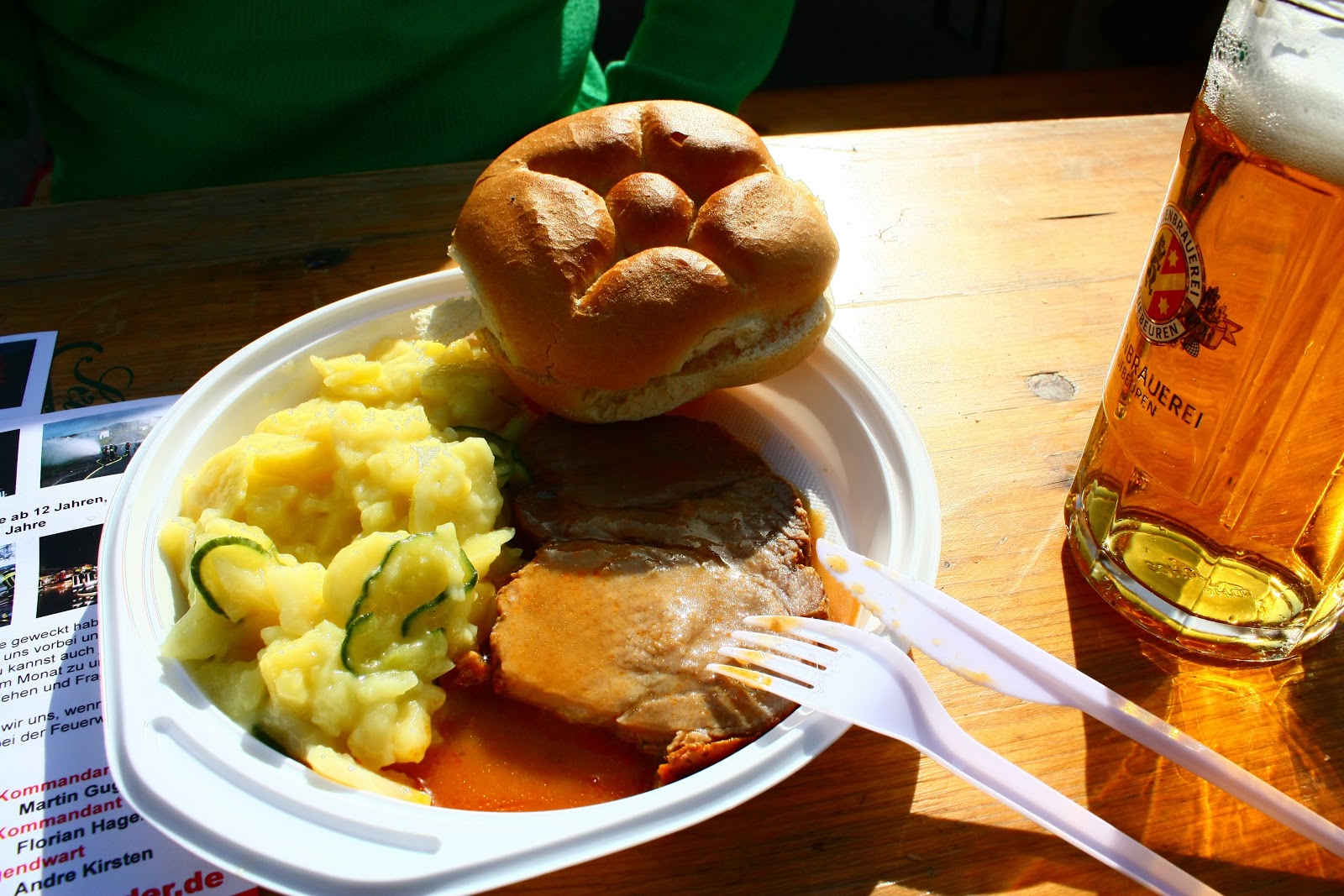 Na saída de Landsberg, passamos por um minúsculo vilarejo que nem consta no mapa oficial, onde estava rolando a maior festança. Parece que era uma festa do Corpo de Bombeiros local, mas não sei bem ao certo. Paramos o carro e nos juntamos aos locais para saborearmos uma deliciosa cerveja local e alguns quitutes típicos, como salada de batatas bávara com carne de porco. Delícia!!! Estas surpresas repentinas deixam a viagem ainda melhor!