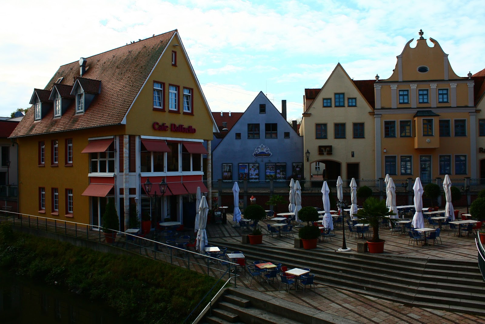 A rua principal da cidade é bem bonitinha, com casinhas bem coloridinhas. Paramos o carro e vimos que estava sendo montada uma pequena feira de produtos locais, com comida e artesanatos. Dali avistamos um rio. Não me pergunte qual, pois Donauworth está localizada numa área onde o rio Danúbio e o rio Wornitz se encontram.