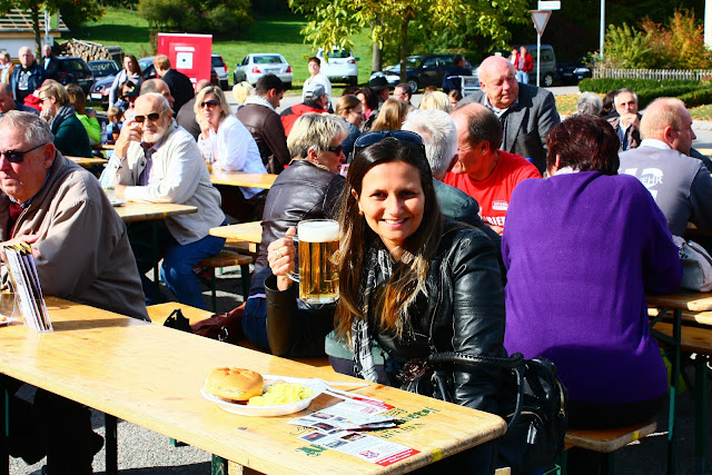 Na saída de Landsberg, passamos por um minúsculo vilarejo que nem consta no mapa oficial, onde estava rolando a maior festança. Parece que era uma festa do Corpo de Bombeiros local, mas não sei bem ao certo. Paramos o carro e nos juntamos aos locais para saborearmos uma deliciosa cerveja local e alguns quitutes típicos, como salada de batatas bávara com carne de porco. Delícia!!! Estas  surpresas repentinas deixam a viagem ainda melhor!