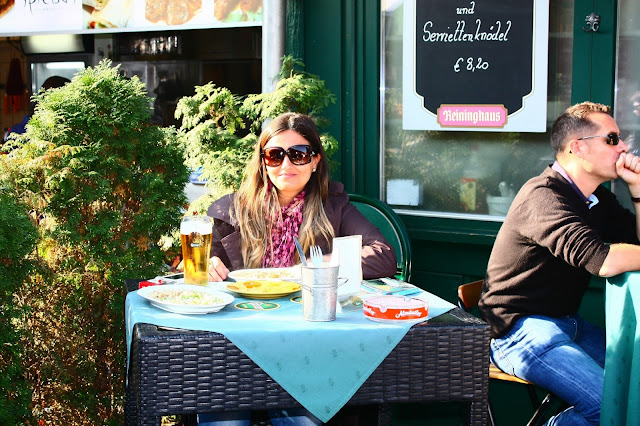 Acabamos parando no Landsknech Bier e escolhemos uma espécie de strogonoff de carne de porco com arroz, comida típica austríaca. Estava muito bom. Ainda mais com uma cerveja austríaca bem gelada!