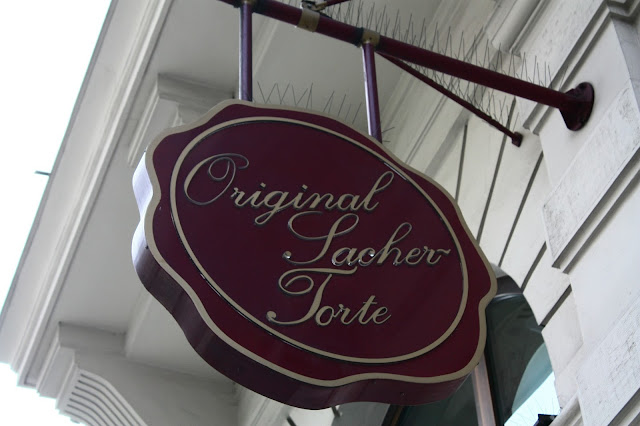 Andando pela Kartner Strasse sentido Karlplatz, passamos pelo Sacher Hotel, onde parei para experimentar a mais tradicional torta da cidade: a Sacher torte, doce `a base de chocolate recheado com creme de damasco. A torta vem acompanhada de uma bola de chantilly que deve ter 99.999 calorias. Sinceramente, não achei nada demais, mas estando em Viena, tem que experimentar e desembolsar cerca de 5 euros por este pedacinho. E às vezes ainda tem que esperar por uma mesa. A disputa é sempre grande!