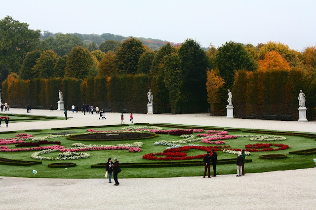 Aqui, mais uma vez, os jardins são uma atração à parte. Eu adoro flores e plantas e sempre estes jardins europeus me impressionam pelo capricho e composição. O nome Belvedere foi dado por Maria Tereza e significa Bela Vista, em italiano.