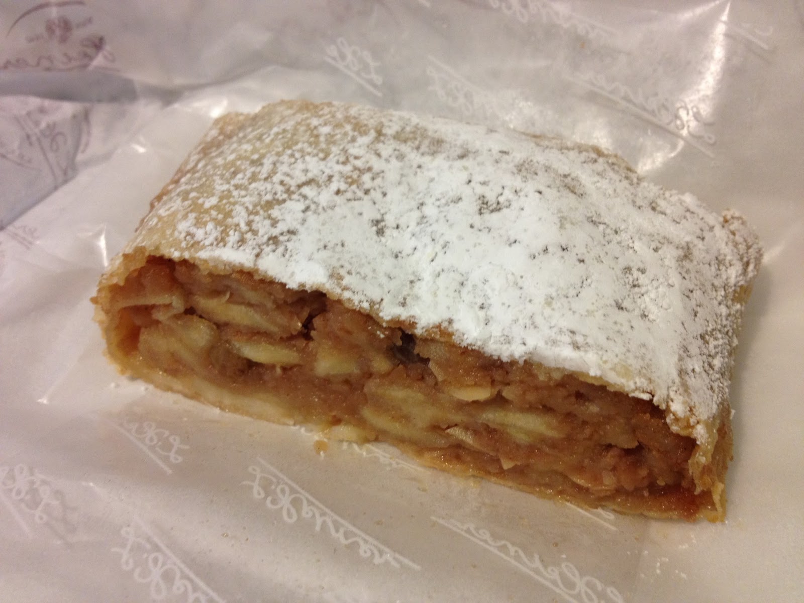 Preferi mil vezes a Apfelstruddel, uma torta quente de maçã com canela e açúcar em massa folhada, extremamente molhadinha. Uma delícia!! Experimentei a do Café L Heiner, na mesma rua, um café super fino e charmoso!