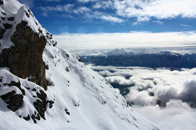 Lá em cima , um céu azul e um sol escaldante, que estava torrando nossos milos. As nuvens ficaram lá embaixo, encobrindo a cidade. Chegamos a sentir calor com aquela “rouparada” toda. No mais, foi muita diversão e muuuuitas fotos.