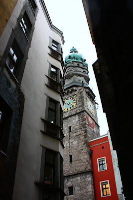 Andar pelas ruazinhas de Innsbruck é uma delícia. Caminhando em direção ao rio Inn, passamos pela Ottoburg, uma espécia de casa (ou torre, como chamam) gótica de 1494, que hoje abriga uma casa de vinhos e um restaurante.