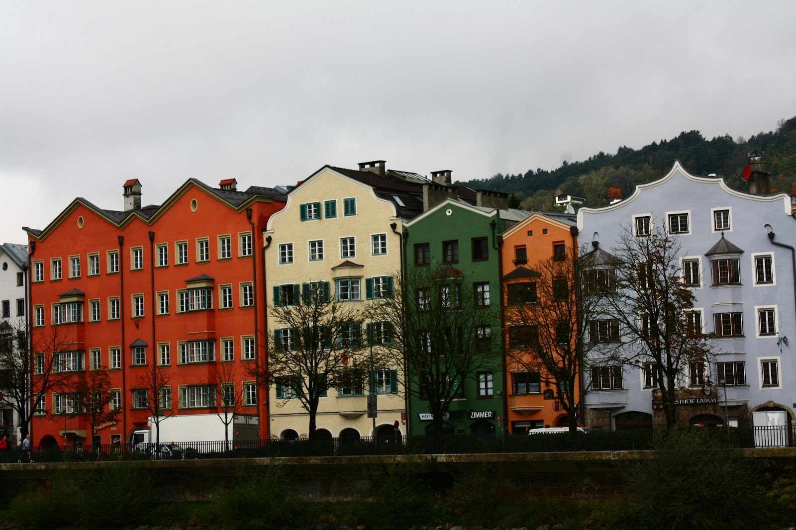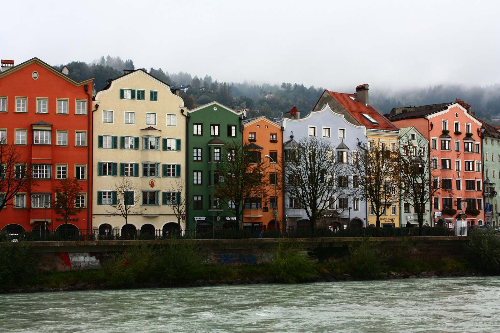 Mas a meu ver, o cartão-postal de Innsbruck são estas belas casinhas coloridas que margeiam o Inn, tendo como cenário de fundo os picos nevados da Nordkette ao fundo. Estas casinhas, na verdade, são diversos estabelecimentos residenciais e até comerciais. Alguns hotéis estão aqui, com um dos melhores preços da cidade (se reservado antecipadamente). Elas nem são citadas em nenhum guia ou site como um ponto turístico porque não têm nada de mais, mas a combinação de cores das casas, aliada ao rio Inn à sua frente e os alpes ao fundo foram o que me chamaram a atenção ao abrir uma revista de viagem há uns anos atrás e me levaram a esta cidade…