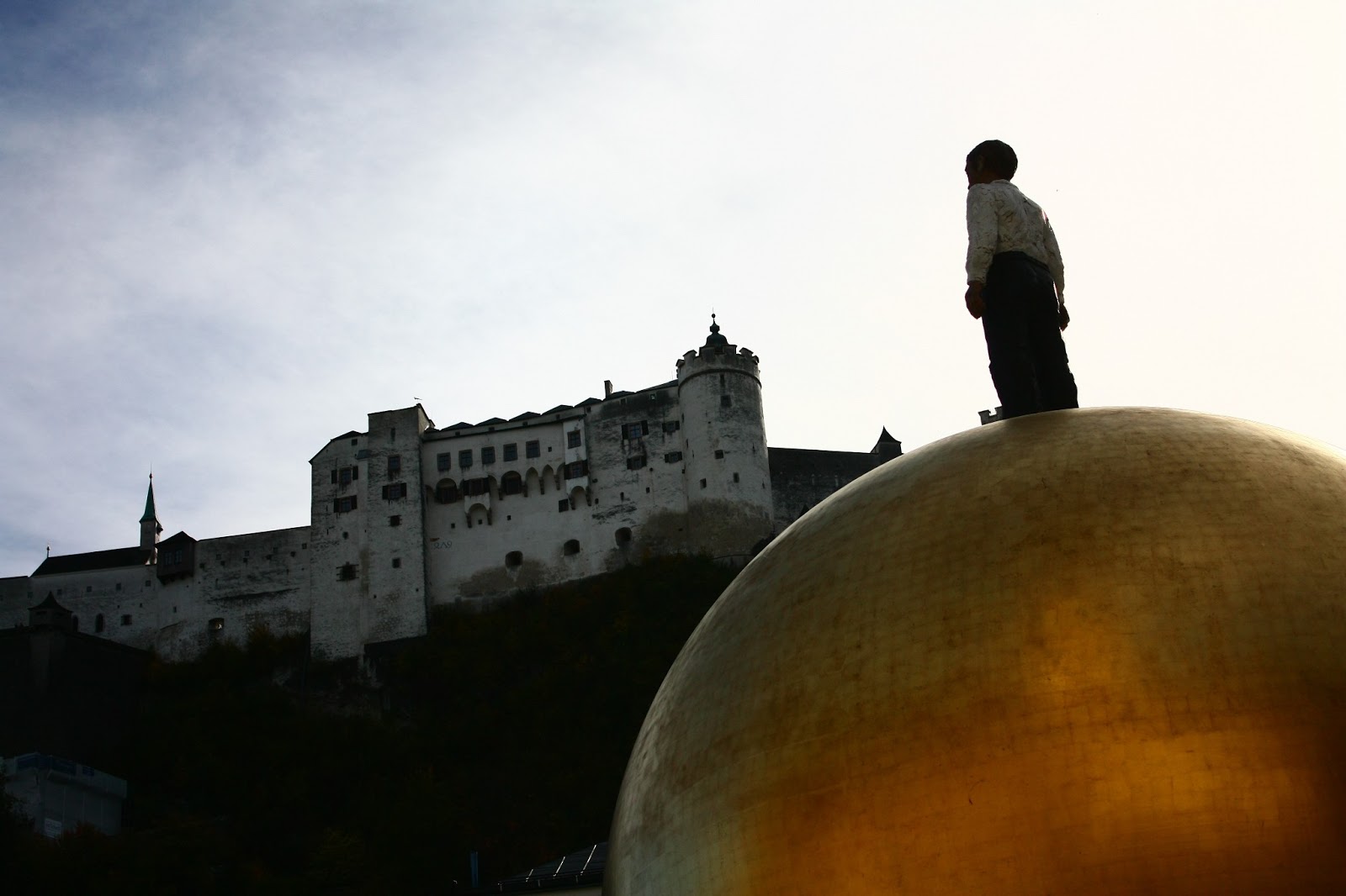 Na Kaptel-Platz, uma imensa esfera dourada com um homem olhando para a montanha chama a atenção. Dizem que ele está a olhar para uma mulher, ao longe! Será?!