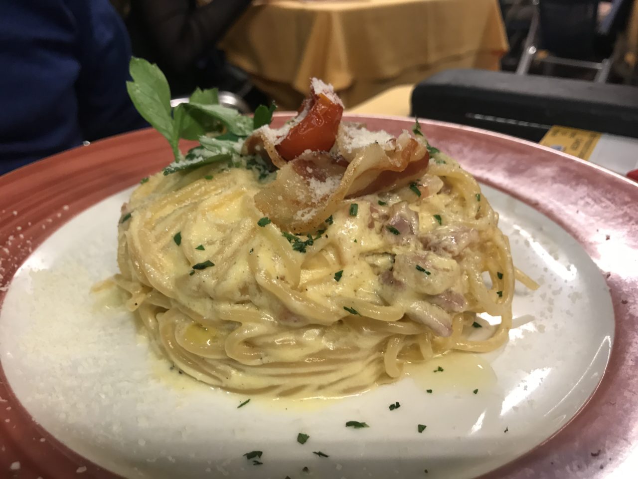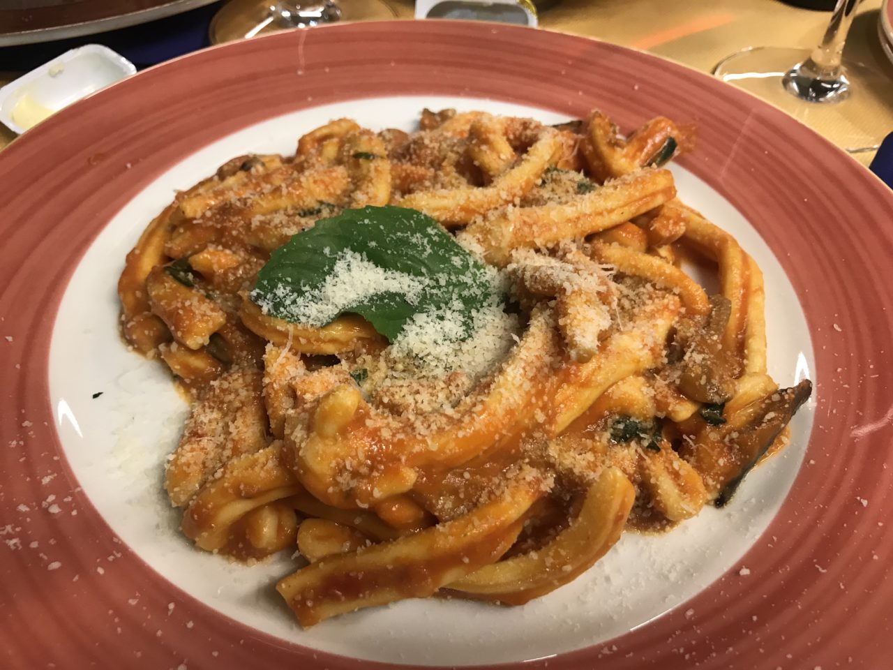 Depois de nos acomodarmos no Hotel Tourist , saímos para procurar algum lugar para jantar. Na pracinha principal da cidade estão dois lugares famosos: Fauno Bar e La Syrenuse, na Piazza Tasso, a principal da cidade. Escolhemos o Fauno Bar para jantarmos e comemos uma bela massa por lá.