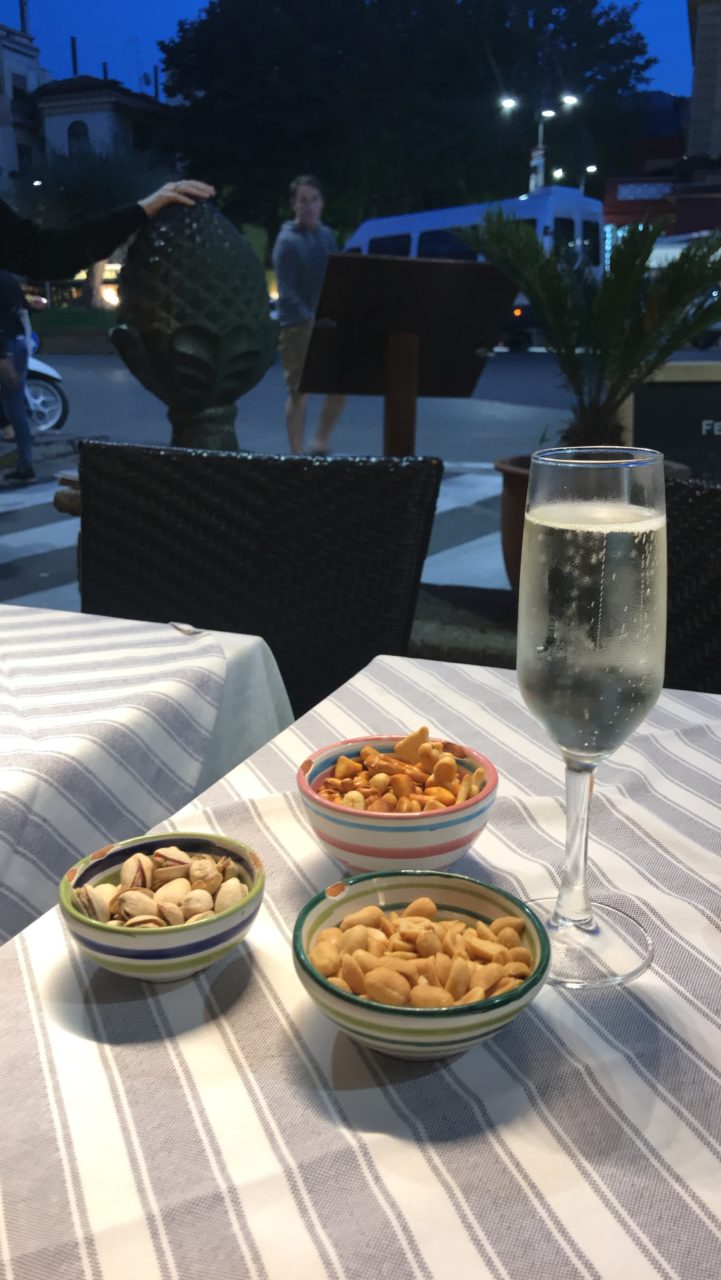 Depois de rodarmos muito pelo centrinho conhecendo cada canto, decidimos parar para bebericar uns drinks. Escolhemos o bar Bucca di Bacco, onde passamos o dia tomando apérol spritz, prosecco e cervejas. Cada drink comprado é companhado de um petisco, o que é ótimo, né? Mas não dava pra sair dali sem comer a pizza, que era um caso à parte de tão gostosa: pedimos a capricciosa (9,5 euros). Preços dos drinks: aperol (7,50 euros), cerveja (5 euros) e prosecco (5 euros).