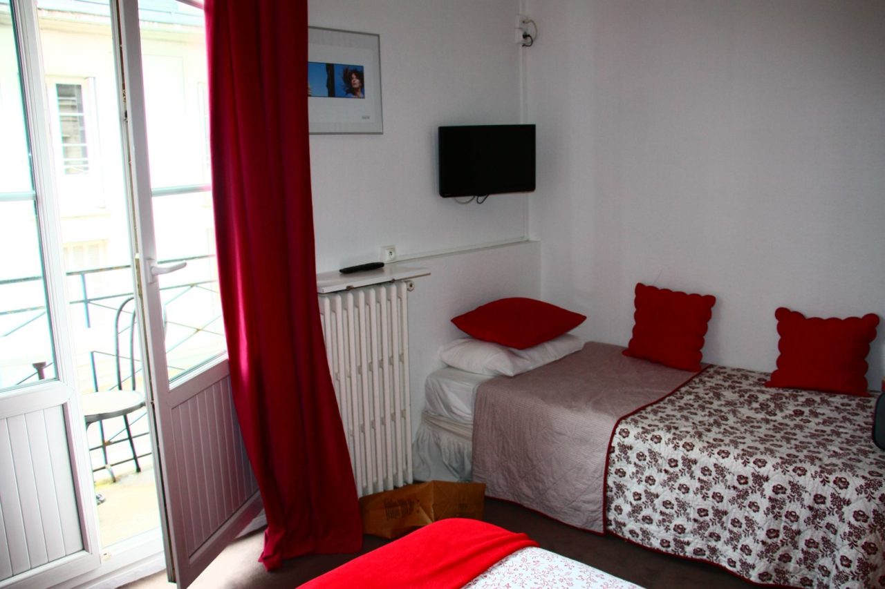 A decoração do hotel era bem moderninha, em tons de preto, cinza e vermelho. Nosso quarto tinha uma simpática varandinha de frente pra rua.