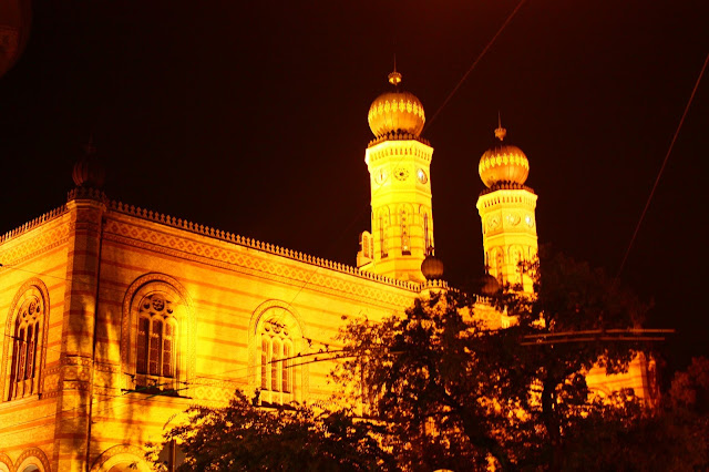 Bem, descemos na estação Astoria, que era a mais próxima do nosso hotel, o Mercure Museum, no lado Peste, claro. A escolha do hotel foi pelo custo x benefício. Em geral, os preços de hotéis em Budapeste não são tão abusivos como em Praga e Viena, por exemplo. O hotel ficava numa rua vazia, mas há uma quadra de um cruzamento de duas grandes avenidas, repletas de cafés, mercados, alguns restaurantes e muitos fast-foods. Ficava praticamente do lado da Grande Sinagoga, com sua arquitetura ímpar.