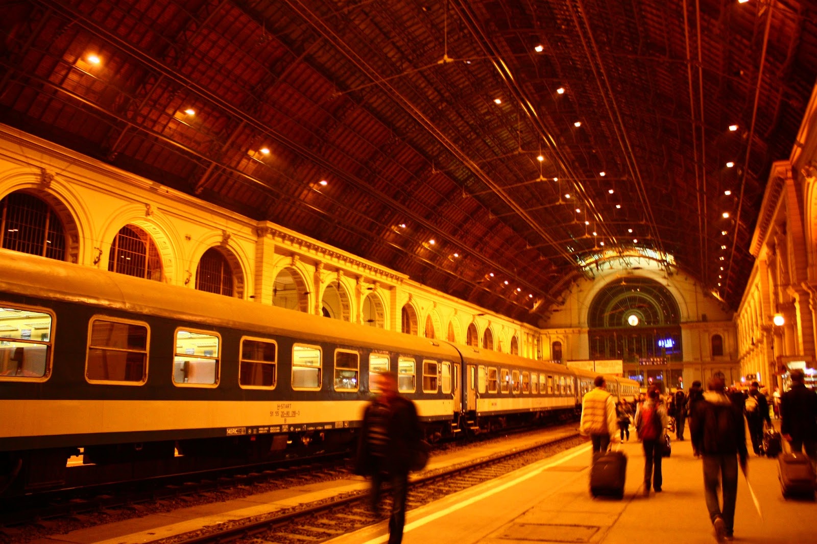 Nós chegamos na cidade de trem, à noite, e descemos na Keleti Pályaudvar (East Station), vindos de Bratislava. Como a moeda aqui é o Florim (HUF), trocamos um pouco de euros para podermos pagar pelo ticket de metrô na estação Keleti pu, que por sinal, não fica dentro da estação de trem e sim, ao lado. É preciso subir toda uma escadaria com aquelas malas e depois descer de novo. Geralmente, pra ajudar o marido, finjo estar sozinha e espero um bom cidadão oferecer ajuda com a minha bagagem. Acho que depois eles se arrependem com tamanho peso hahaha.